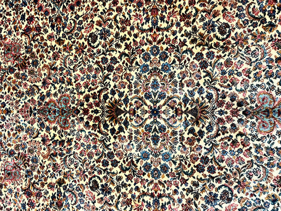 | Condition/Notes | A beautiful vintage Karastan Ivory Kirman #759 rug in very good condition. (Please note that this is the same design as Karastan Floral Kirman #742.) Free of stains, odors, discolorations, tears, etc. Good pile & fringes. Original Karastan label is attached. Recently cleaned and ready to be enjoyed in your space. |