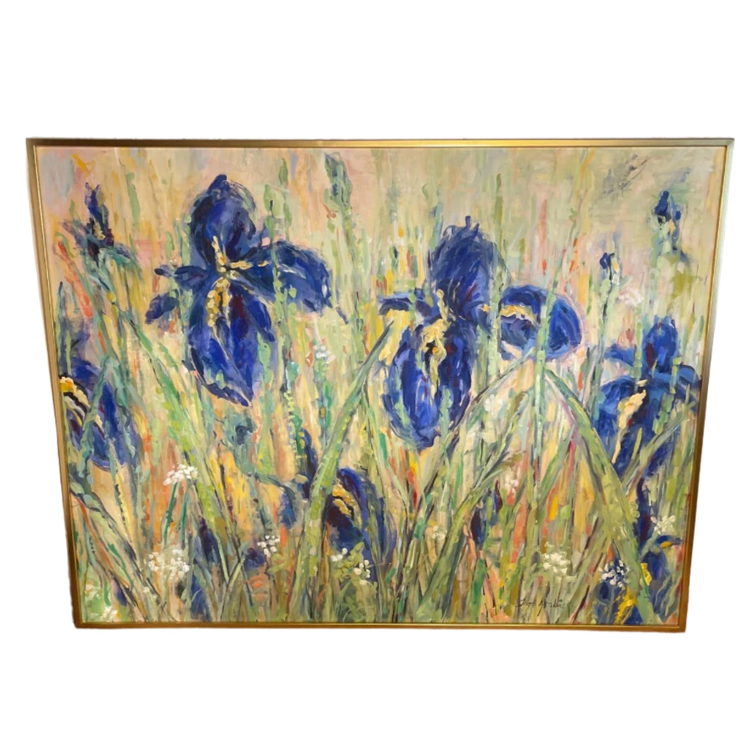 Original Oil on Canvas of Iris Flowers by Swedish Artist Inga Arnbäck 52" W x 40.5" H