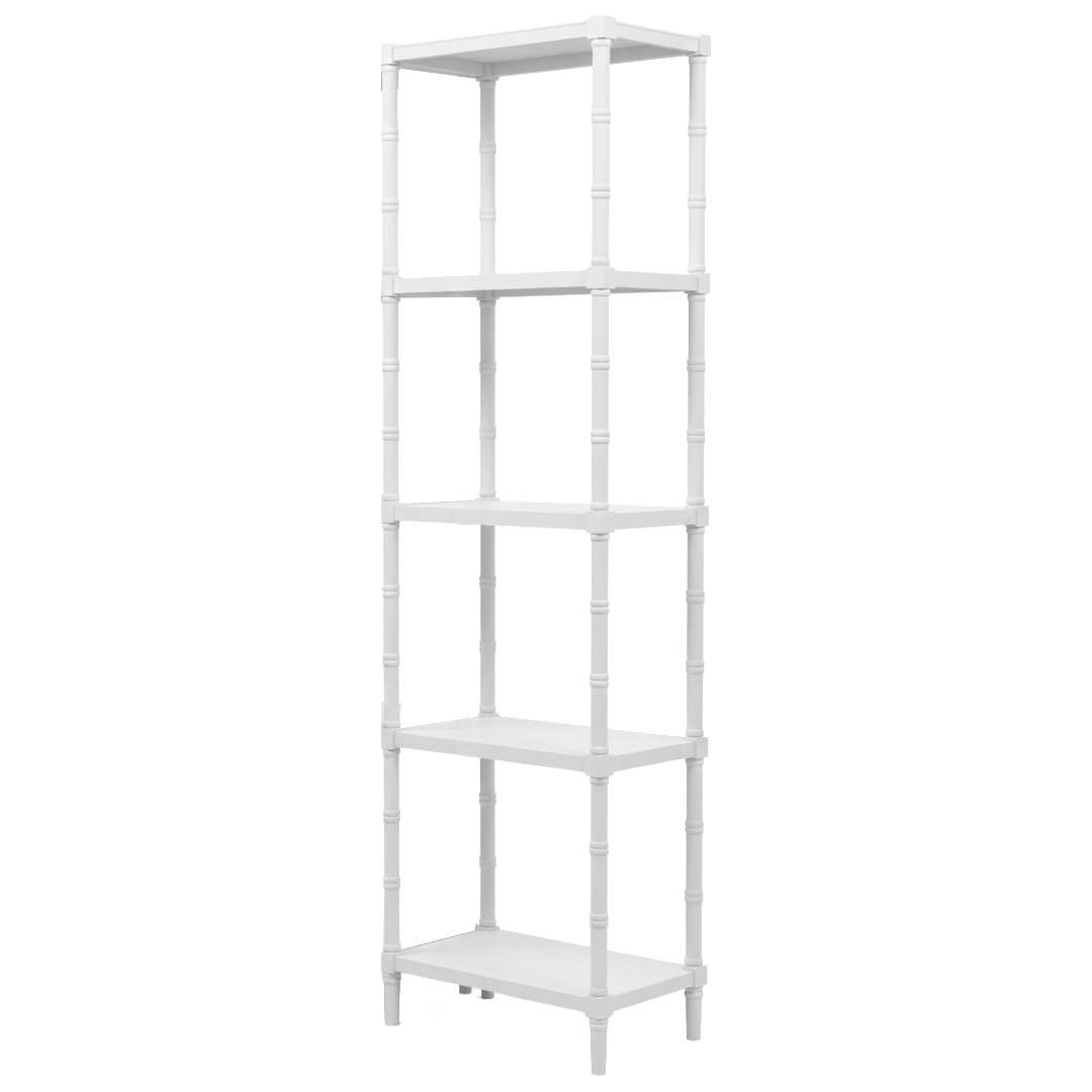 Featuring five spacious shelves with a crisp white frame and soft light green accents, they're perfect for displaying collectibles, plants, or decorative pieces.
