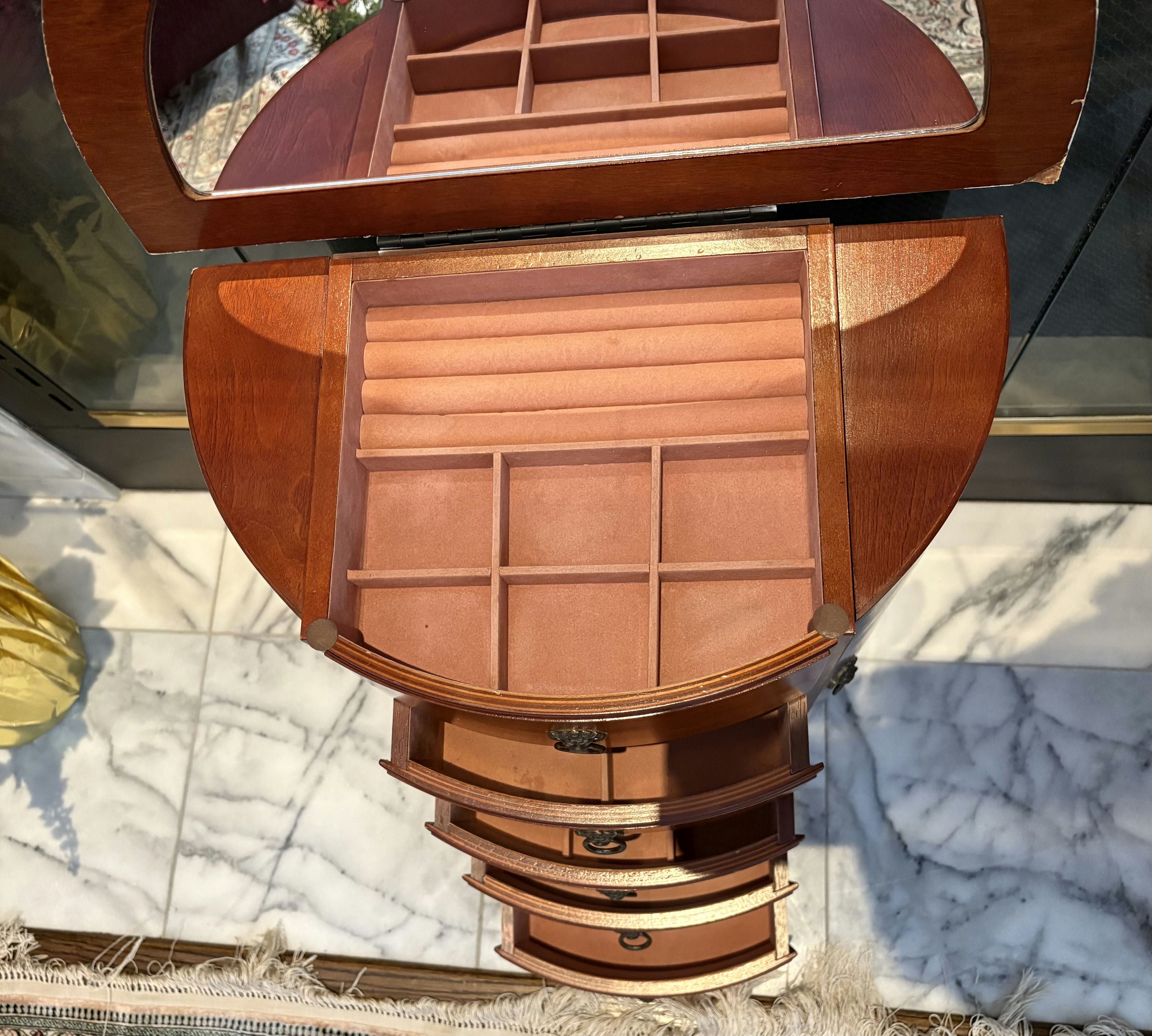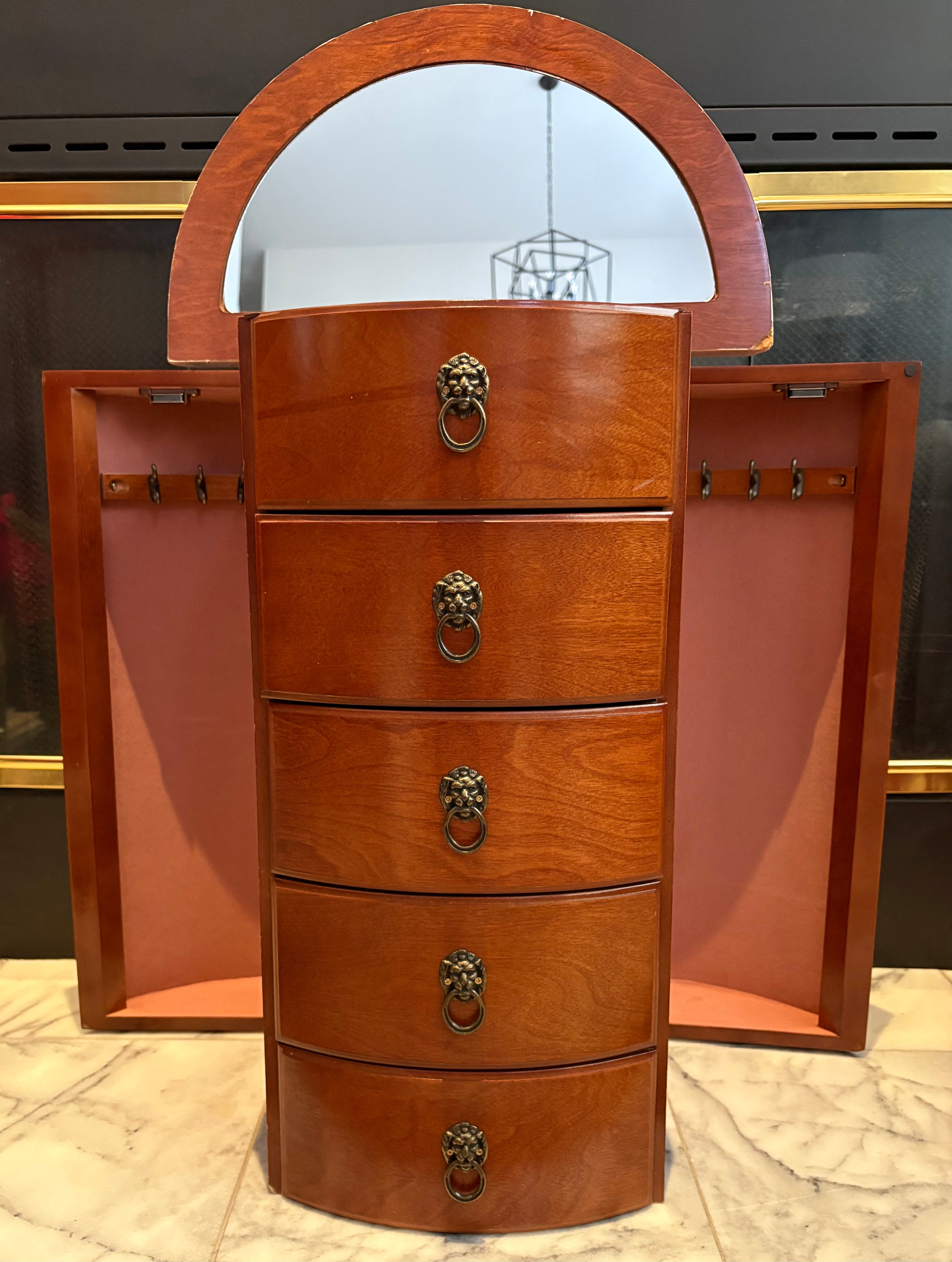 Louis XV Mahogany Demi-Lune Vanity Jewelry Chest 18" L x 11" W x 32" H