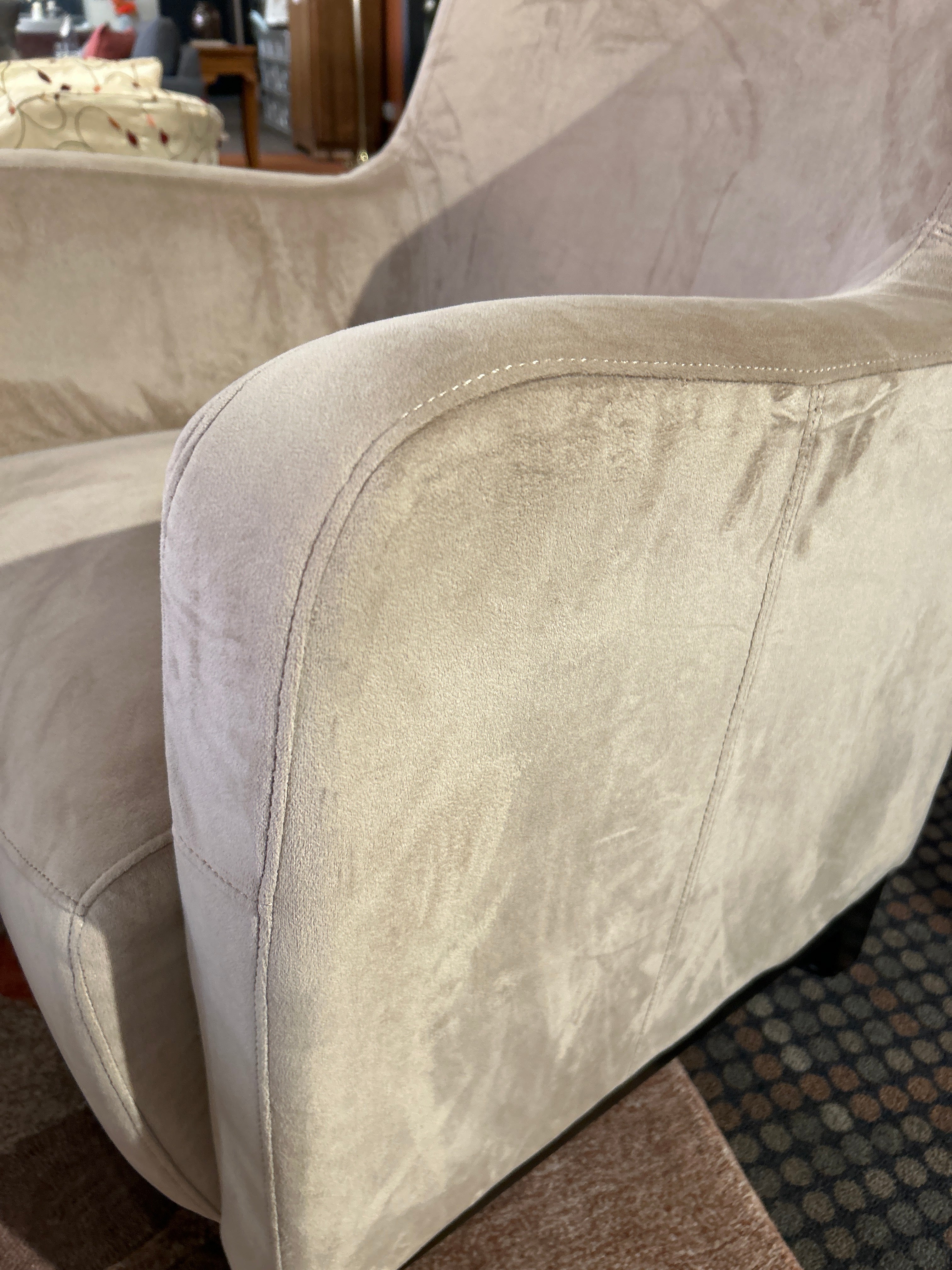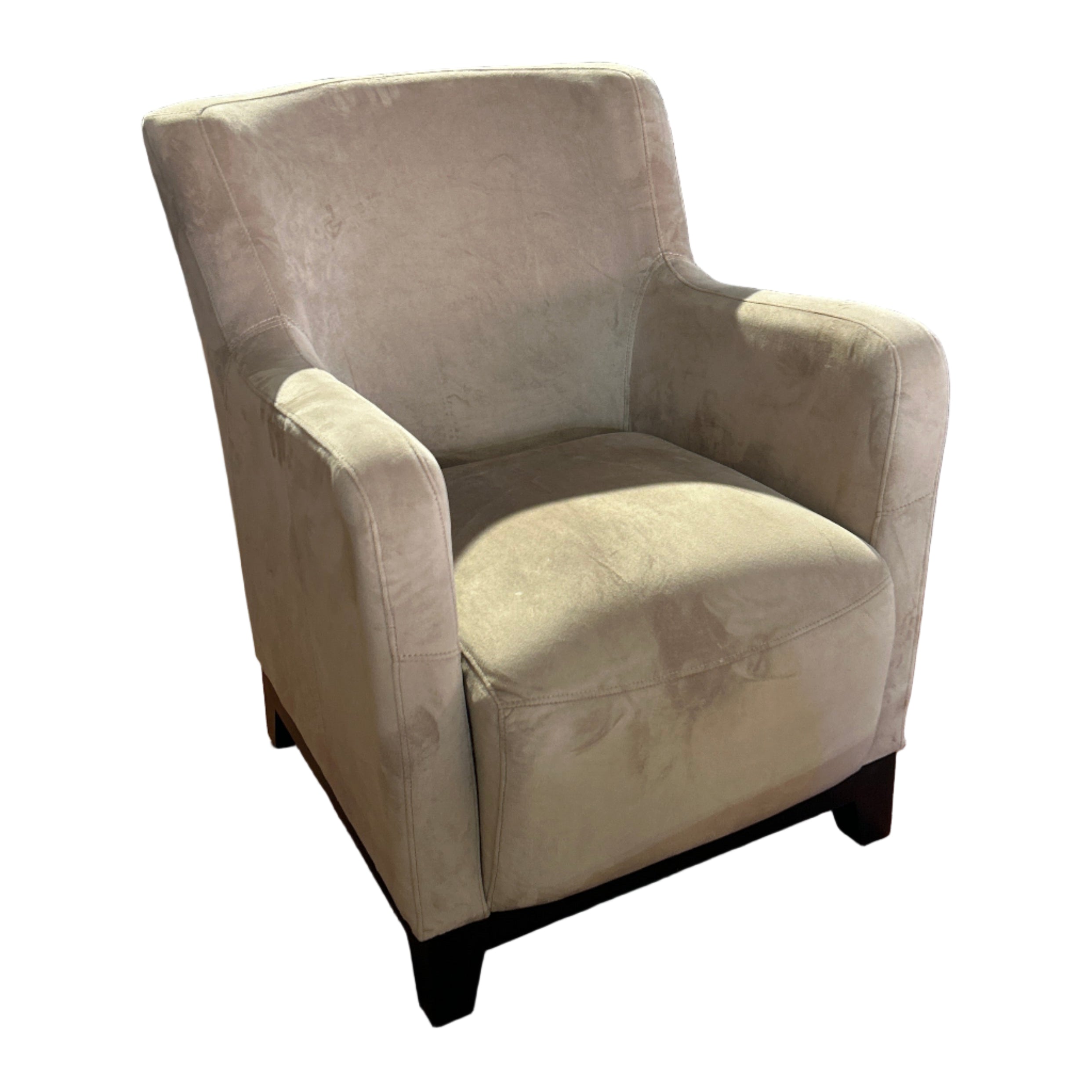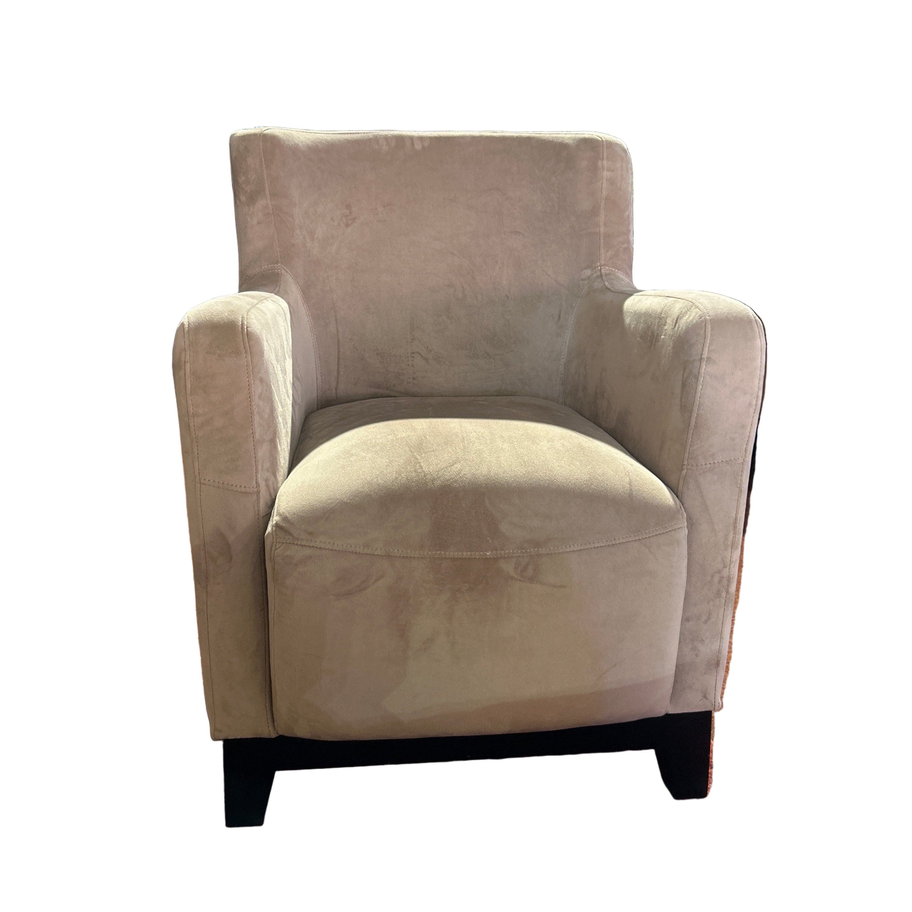Emerald Home beige soft / plush rounded back arm chair.