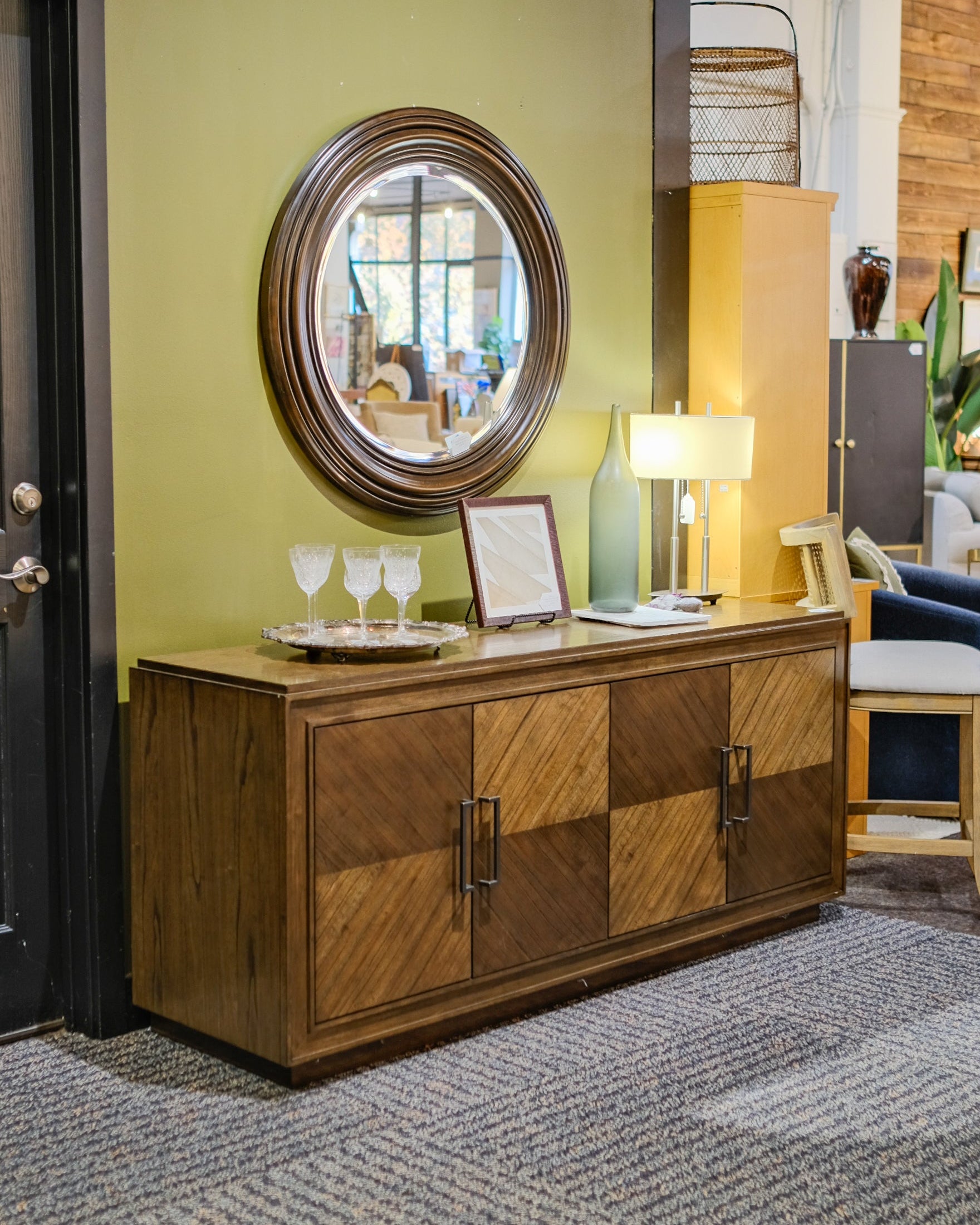 Each door showcases a bold herringbone pattern and oversized hardware, making the Crosly 4-Door Sideboard an elegant addition to any room of your home.