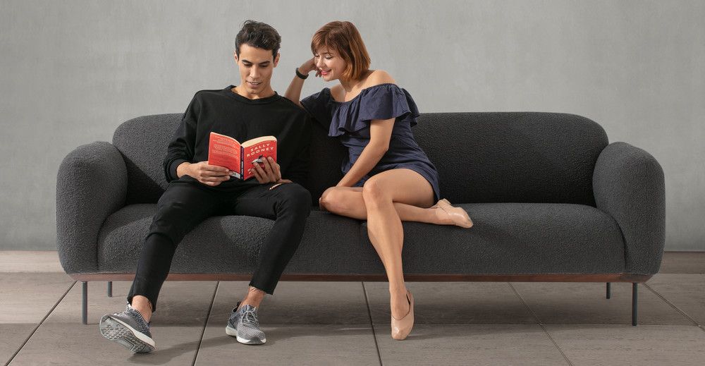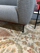 The Puff Sofa by Kardiel offers a stylish and comfortable seating option with gray boucle upholstery. Its modern design and soft material make it a great addition to contemporary living spaces.