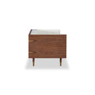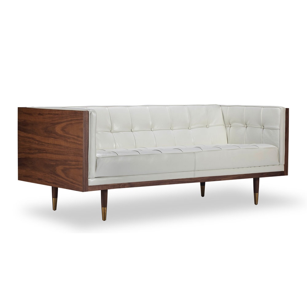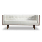 This 1950's modernist reproduction looks amazing from the front, the back and the sides, thus an exceptional choice for defining or dividing up larger spaces. The American Walnut full wood frame brings a natural, organic and warm feel to the Woodrow Box Loveseat. The wood elements introduce a sophistication to mid-century modernism design.