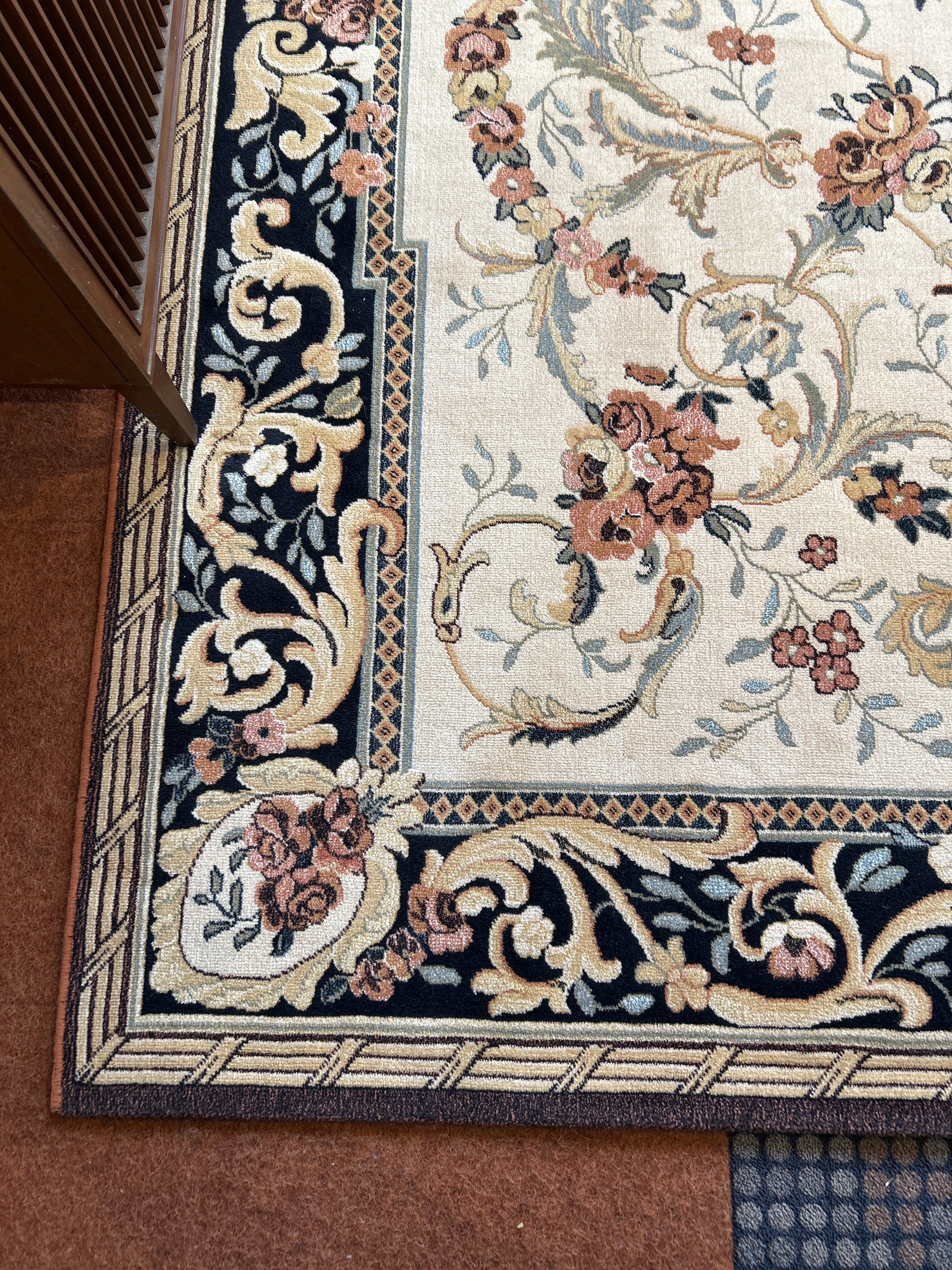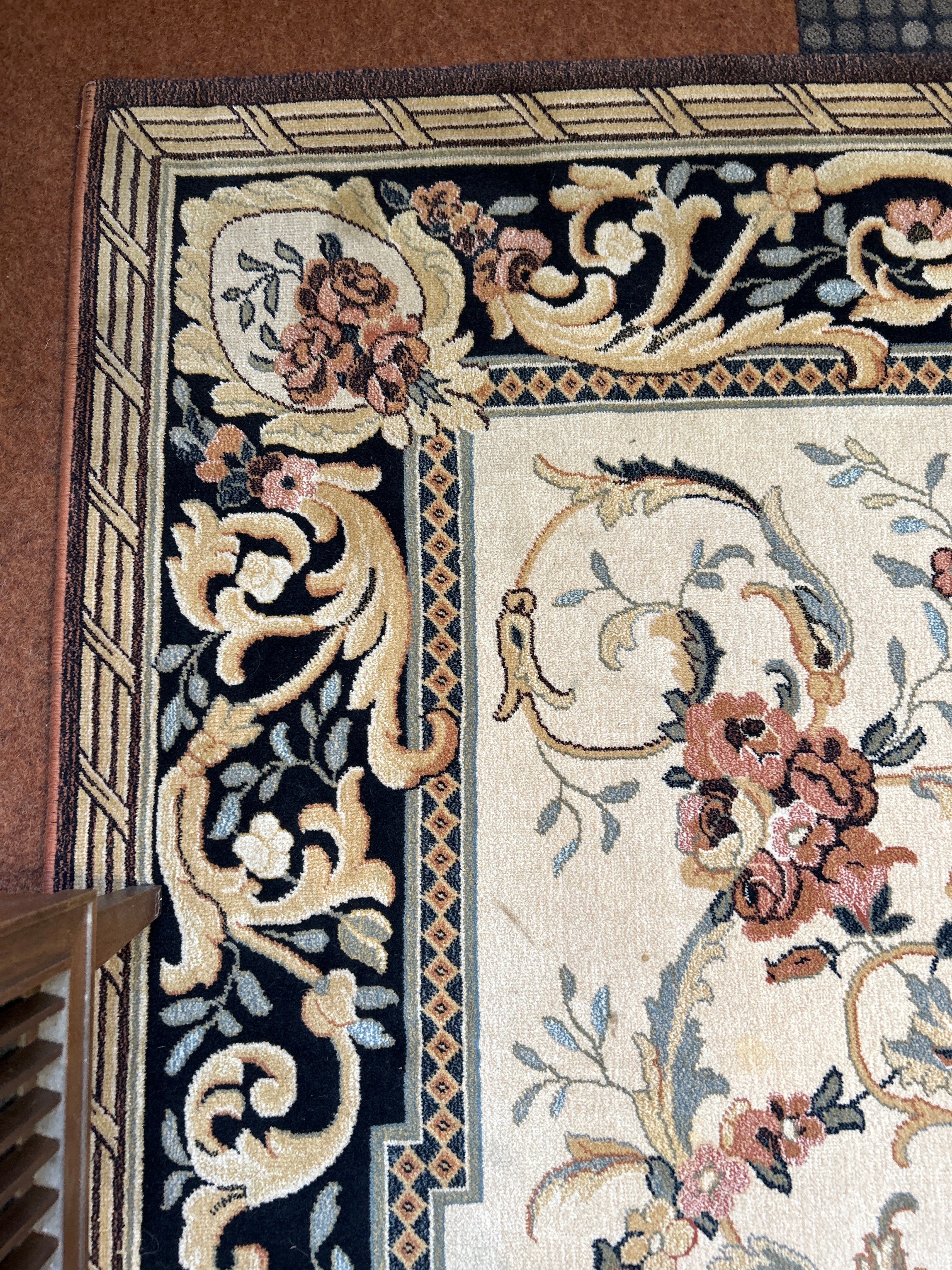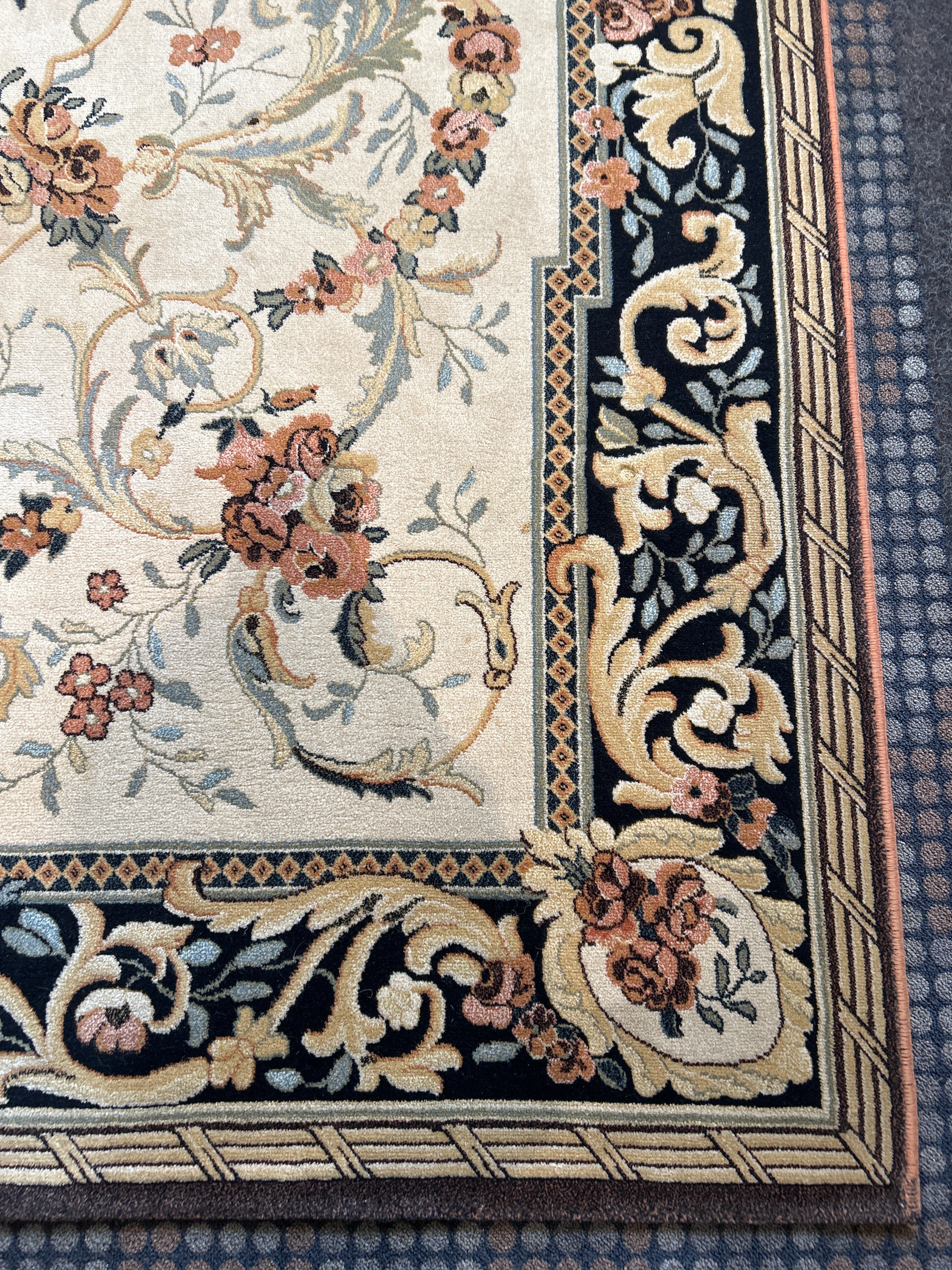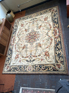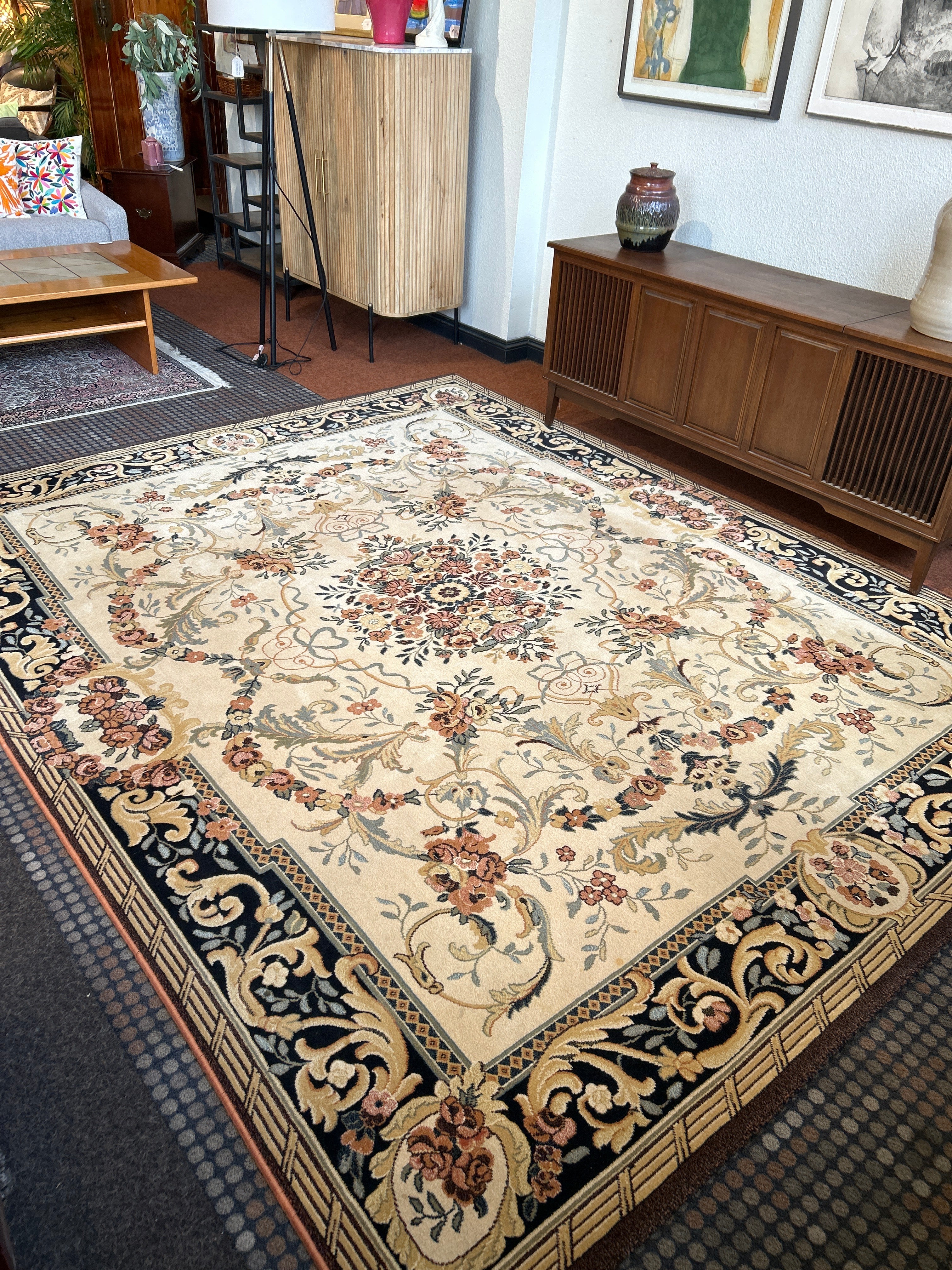 Oriental Patterned Wool Area Rug in Black Beige 9.75' L x 7.8' W