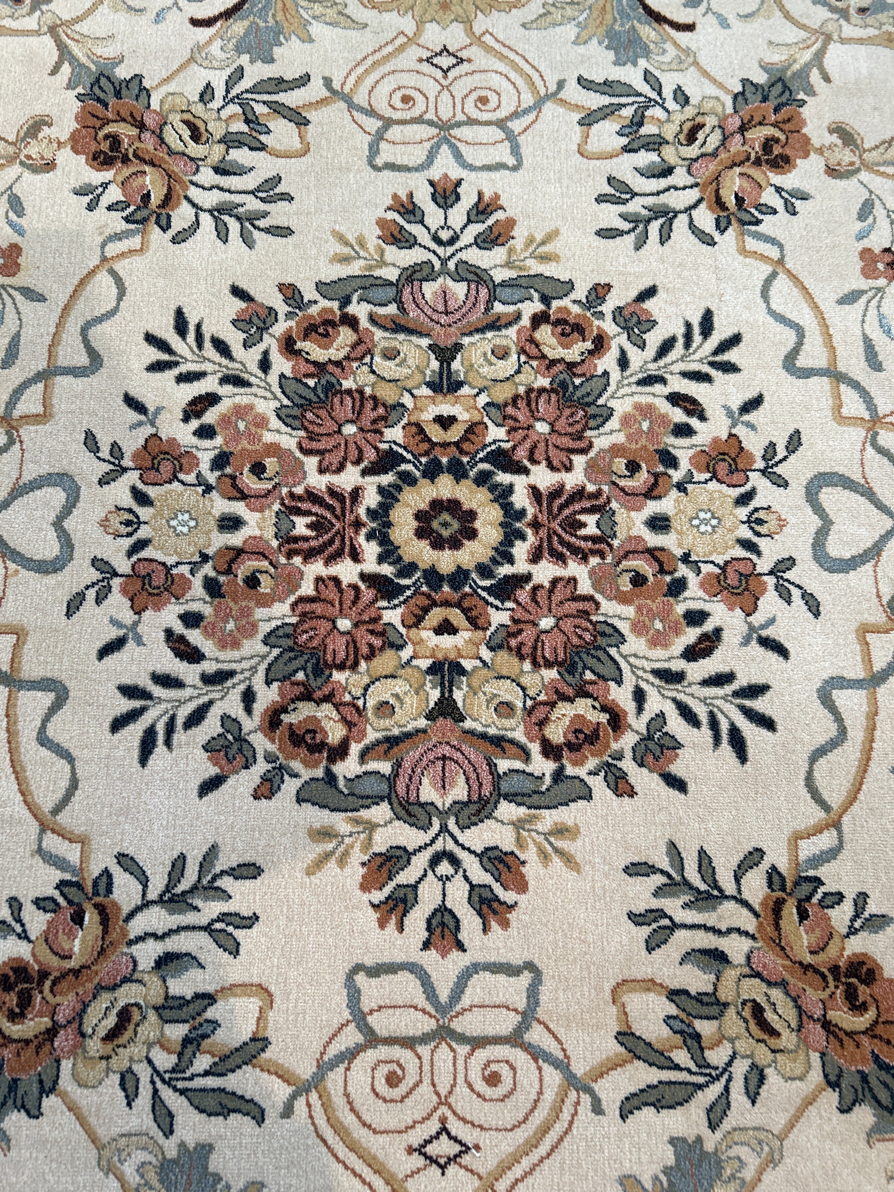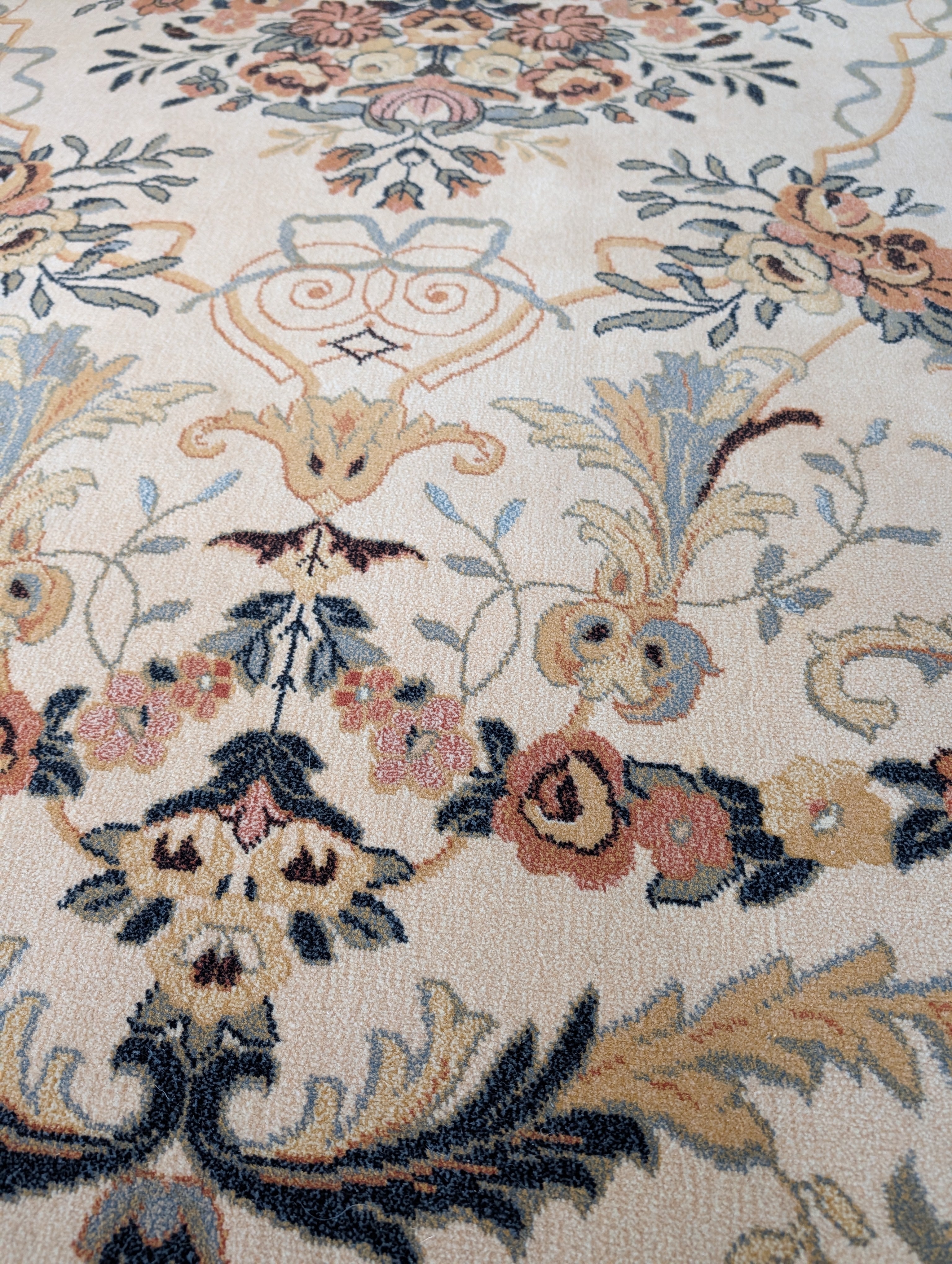 This beautiful 9.75' L x 7.8' W Oriental style rug features a stunning blend of colors and intricate floral patterns, making it a perfect accent for any room.