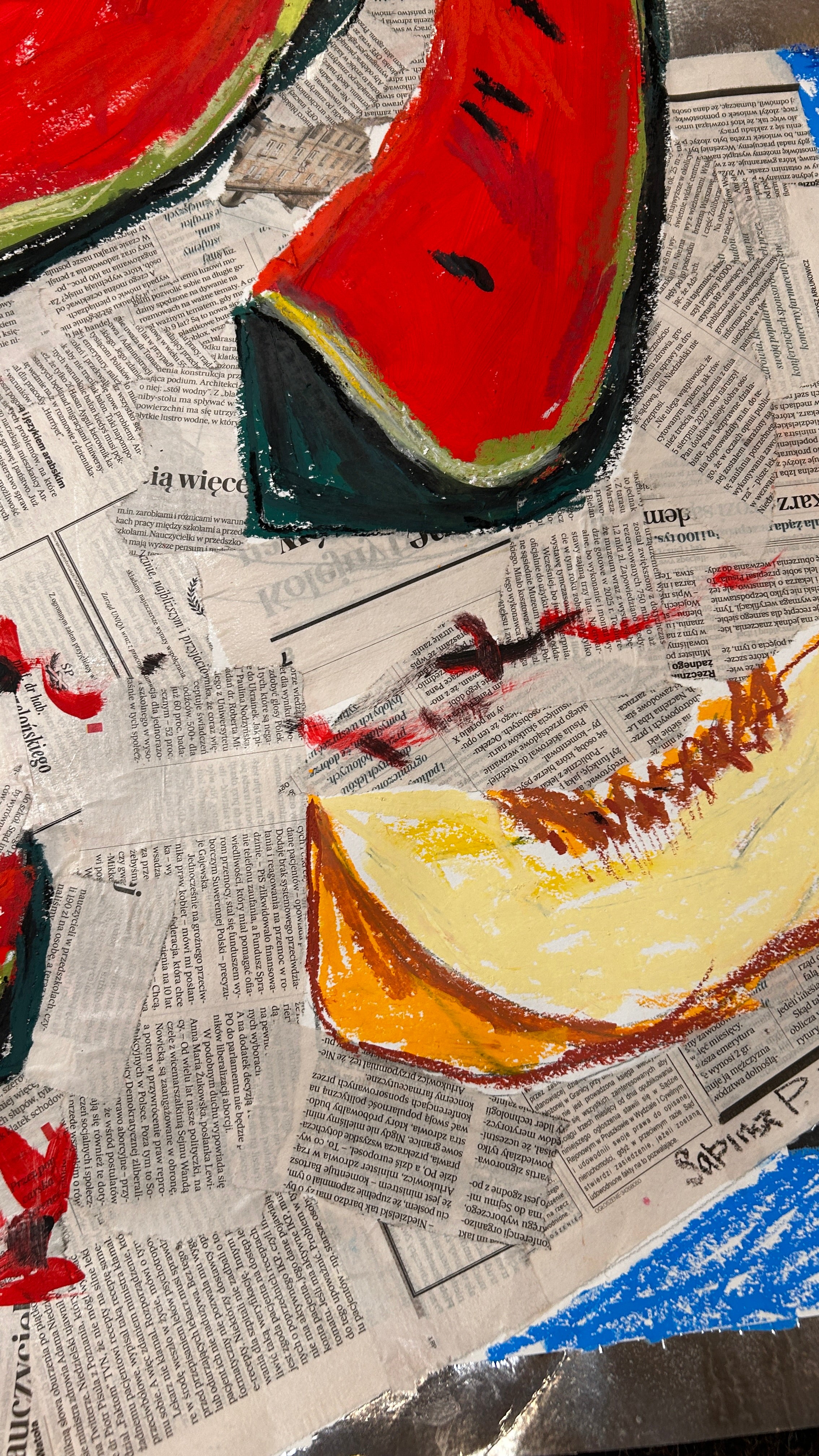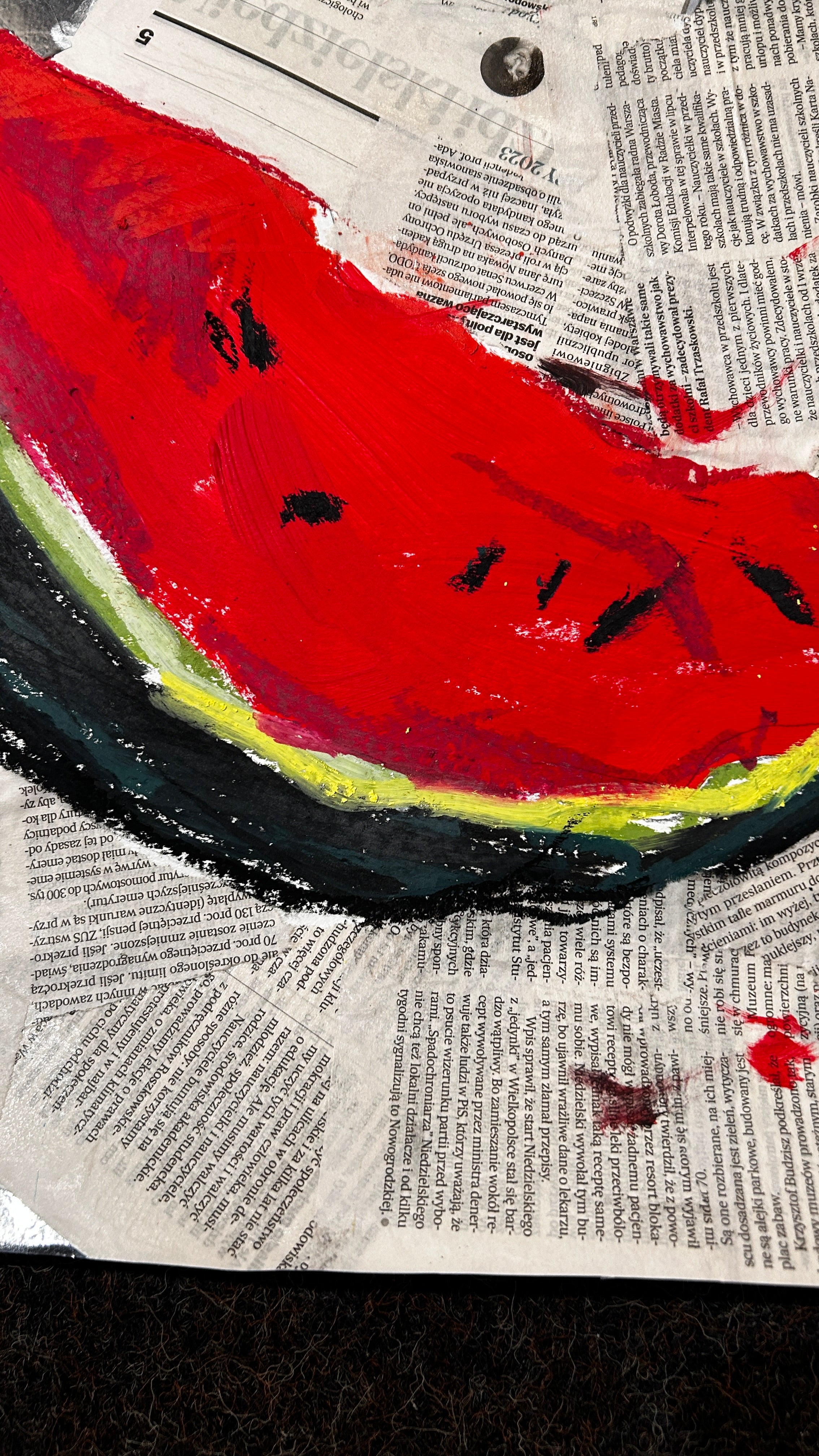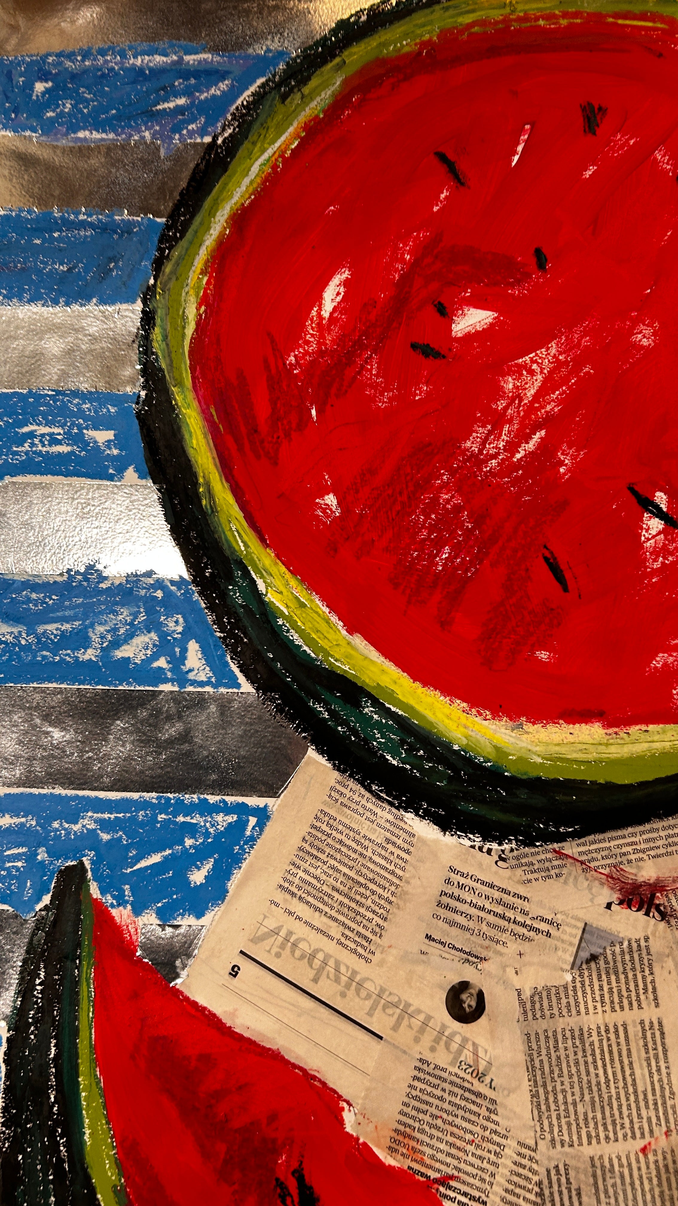 Original Mixed Media: Watermelon by Sabina Pyrayeva 26.5" x 26"