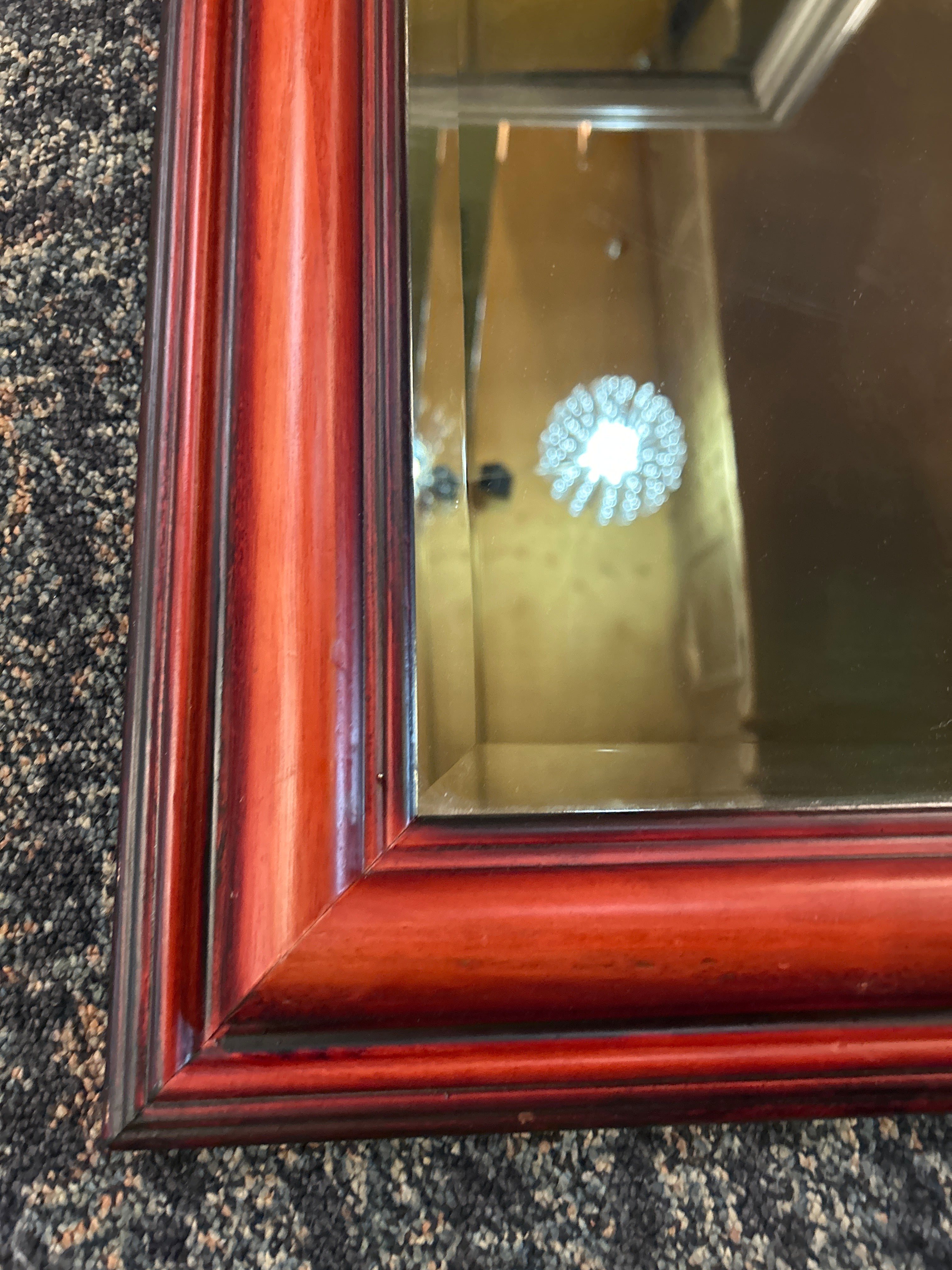 Red Rustic Oak Wood Framed Mirror 32"W x 48"H