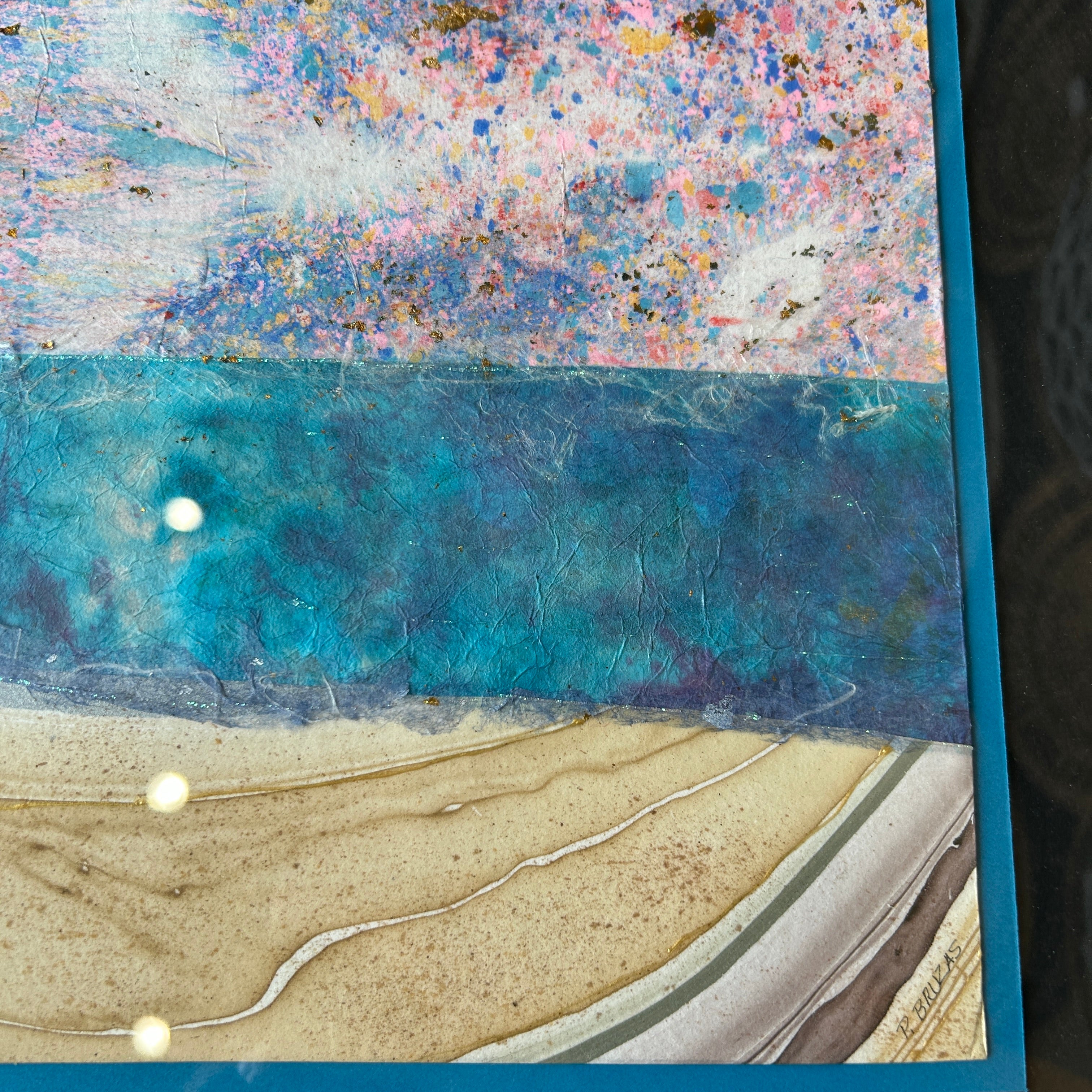 Signed Original Mixed Media "Glimmery Sky" by Patricia Bruzas 24" L x 18" H