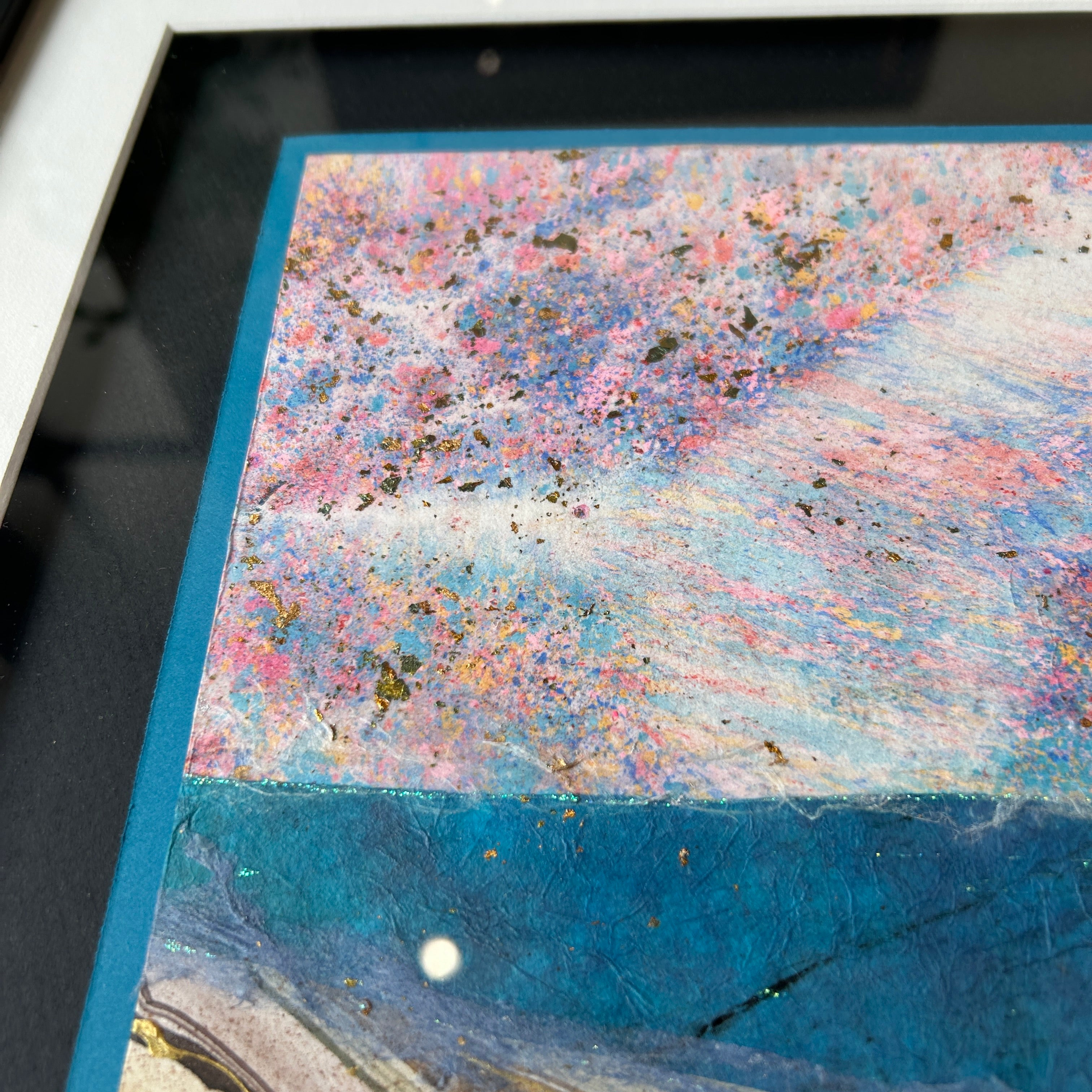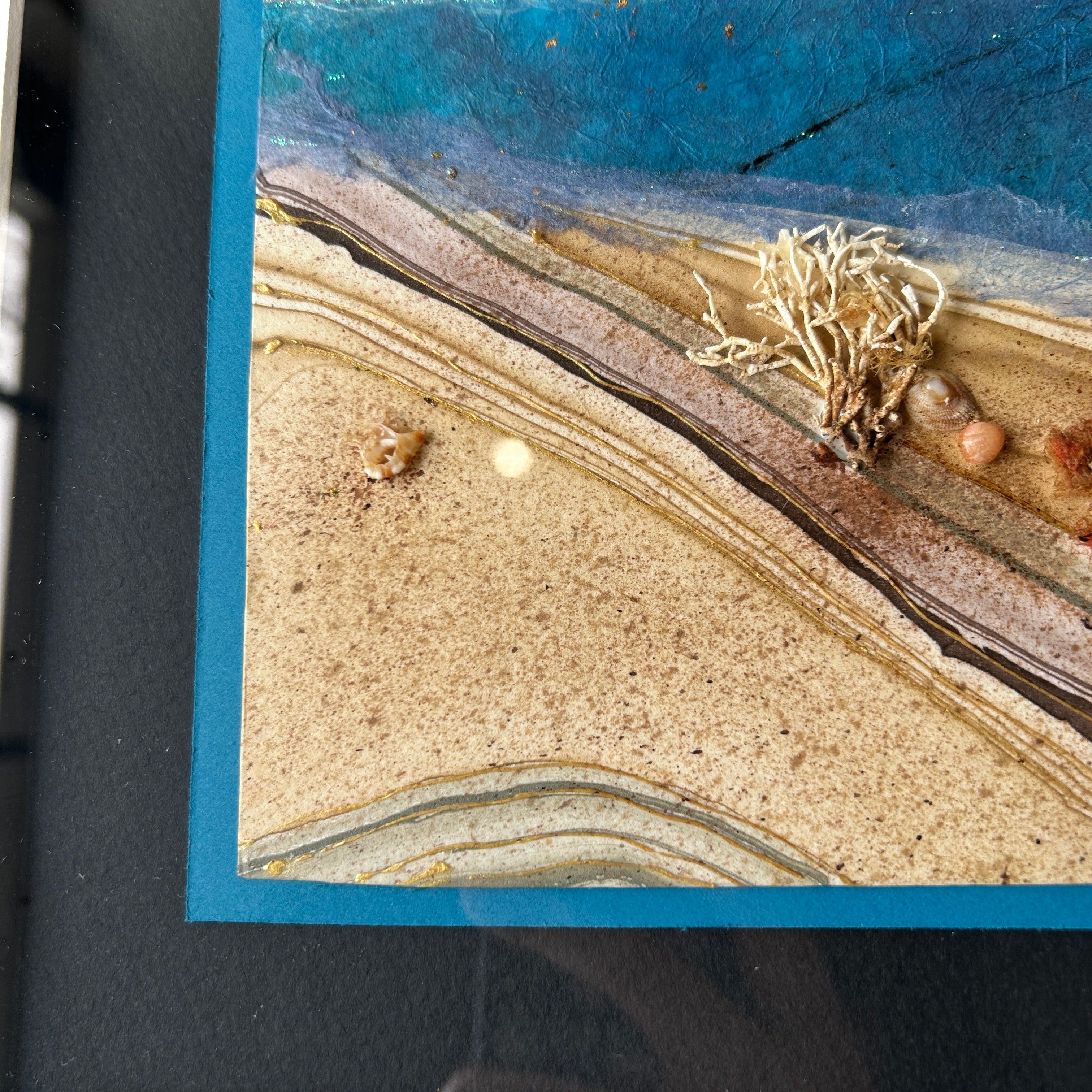 My Collage works are little jewels that are typically developed from handmade paper combined with Sumi and fused glass and other organic materials meant to stir the soul of the viewer.