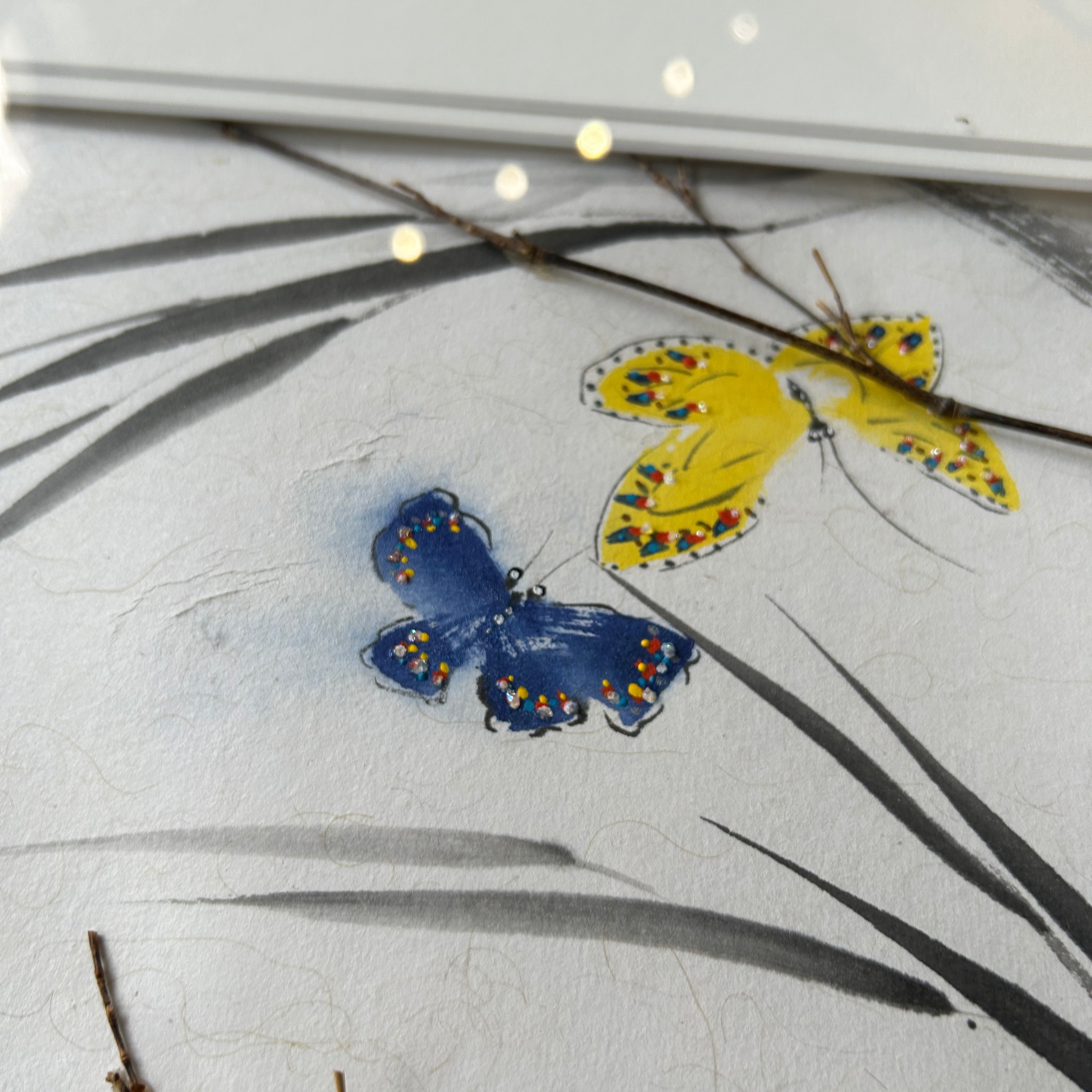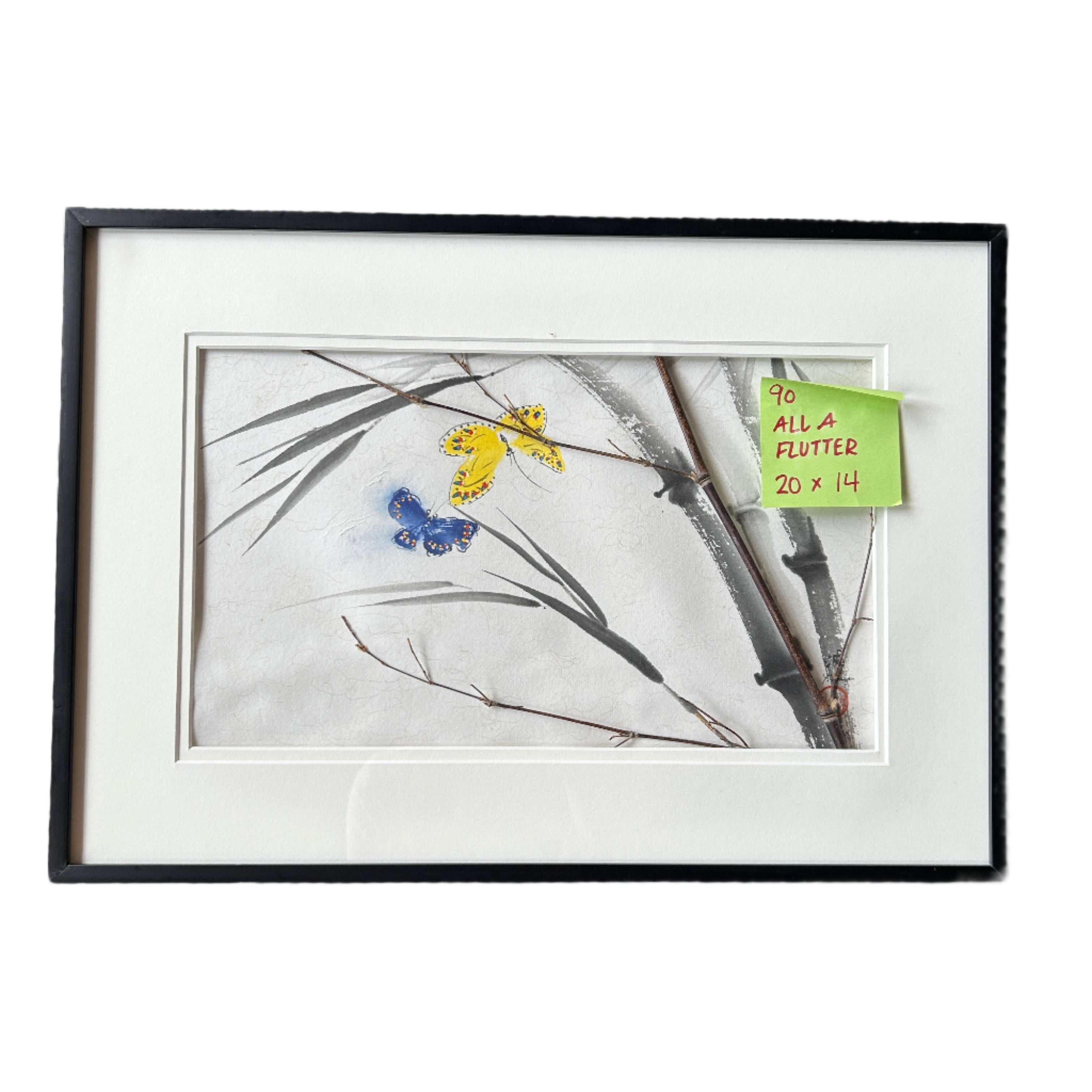 Signed Original Mixed Media Sumi "All A Flutter" by Patricia Bruzas 20 " L x 14" H