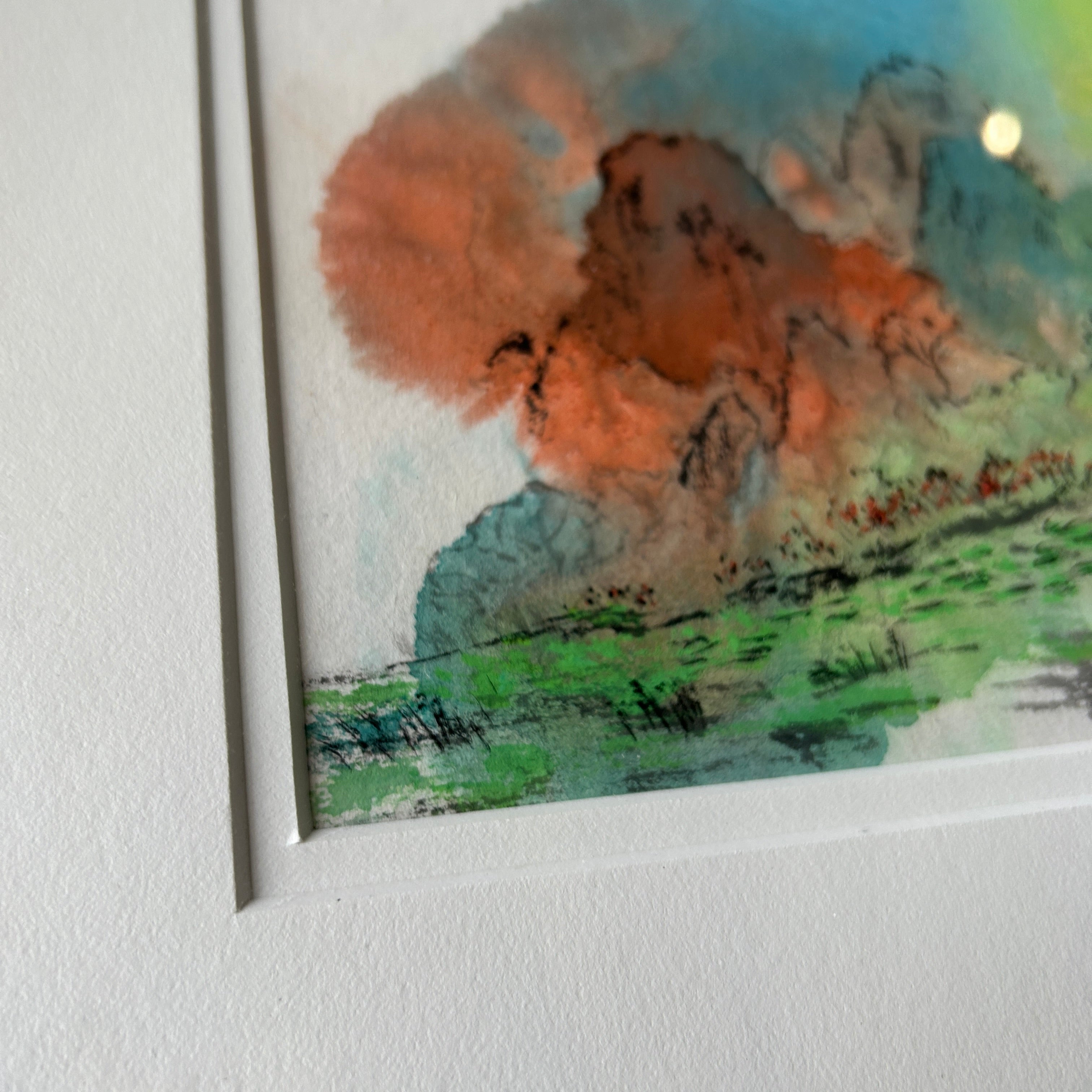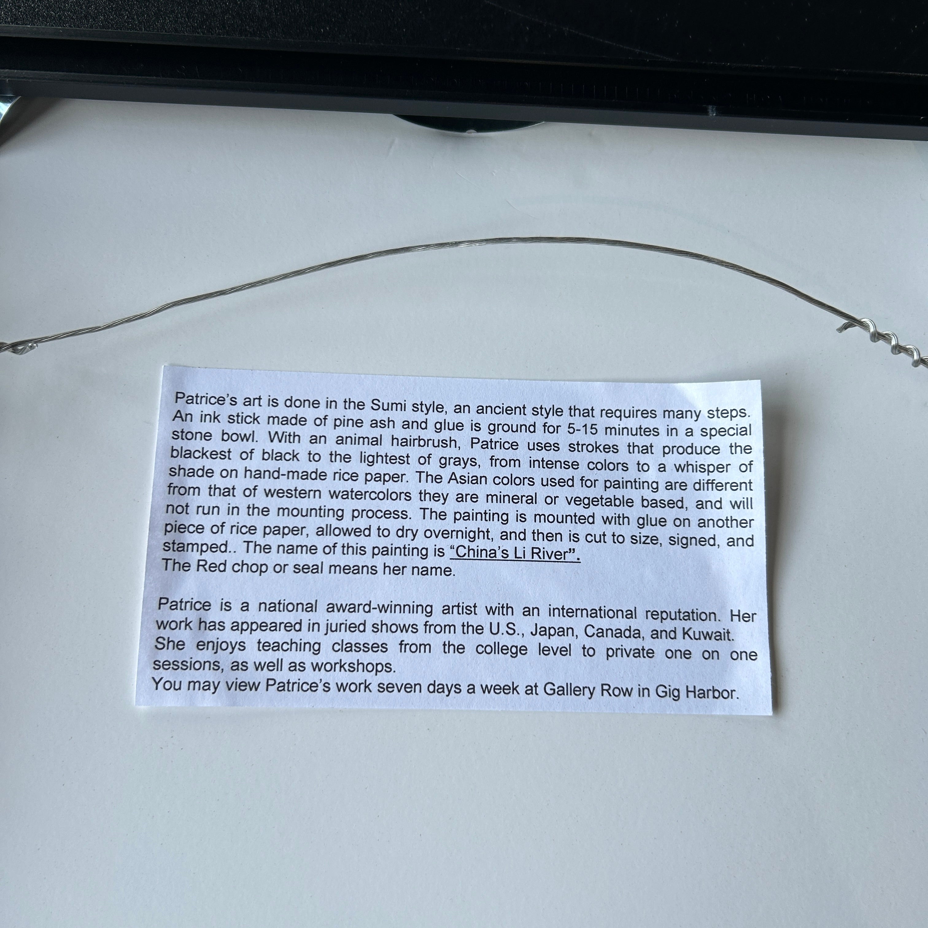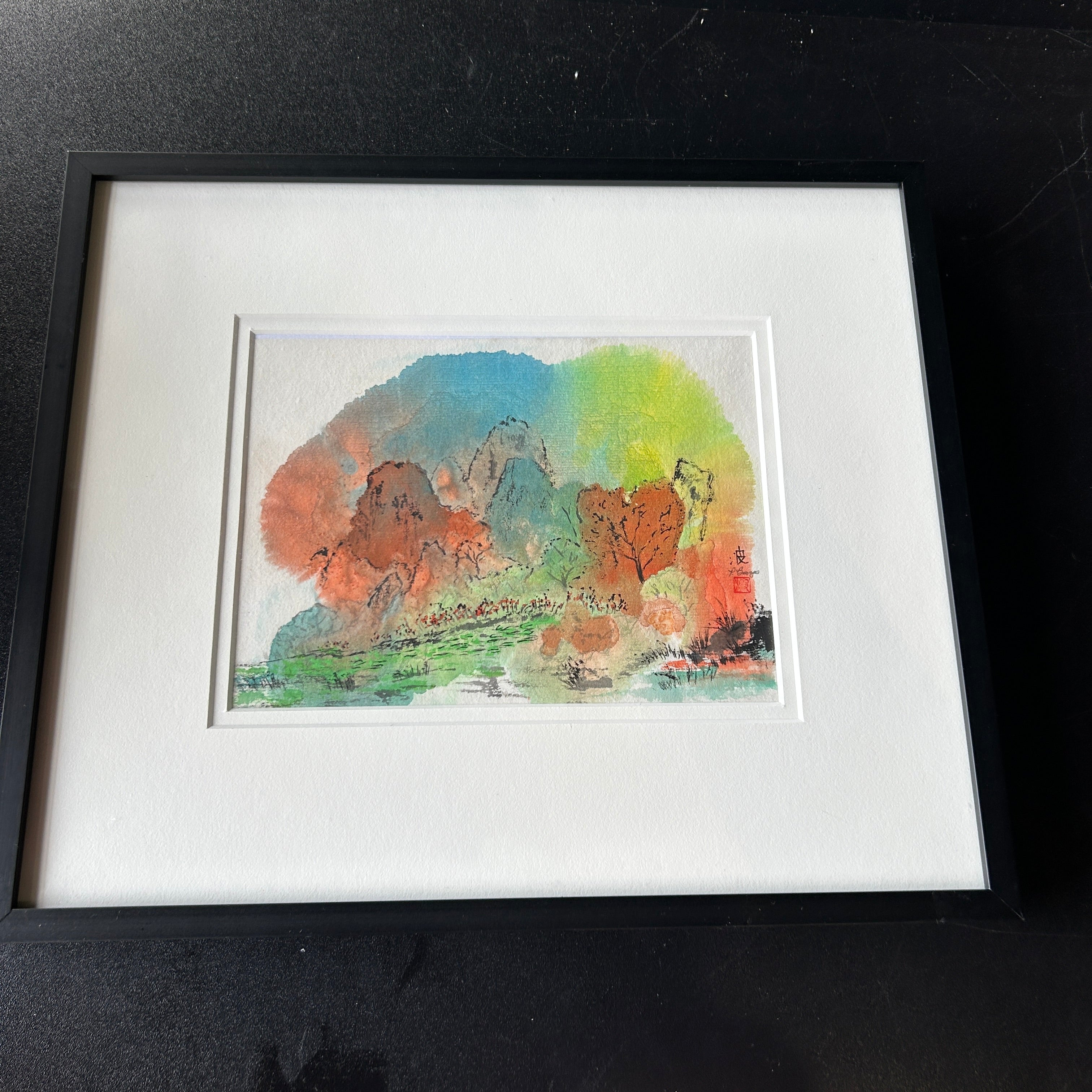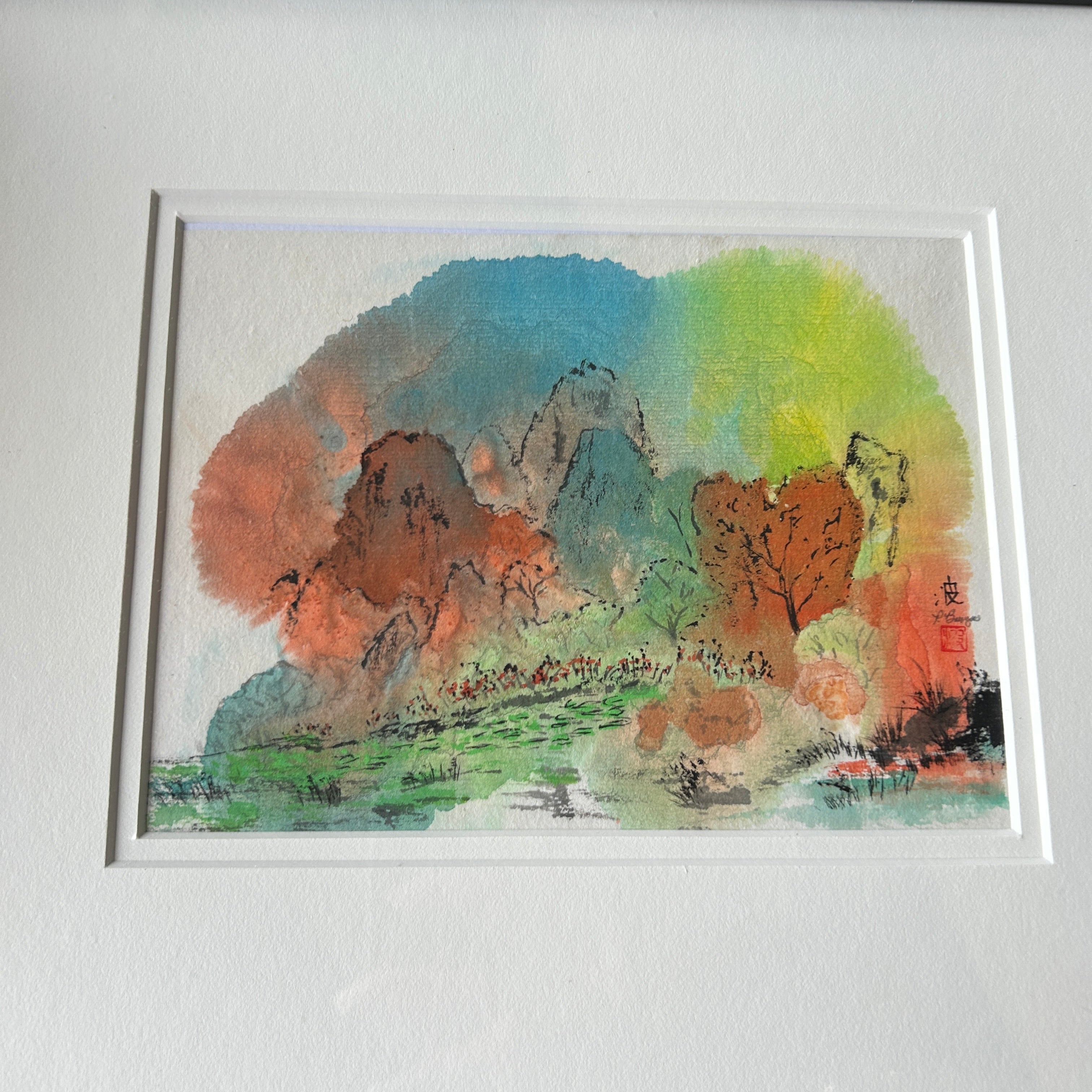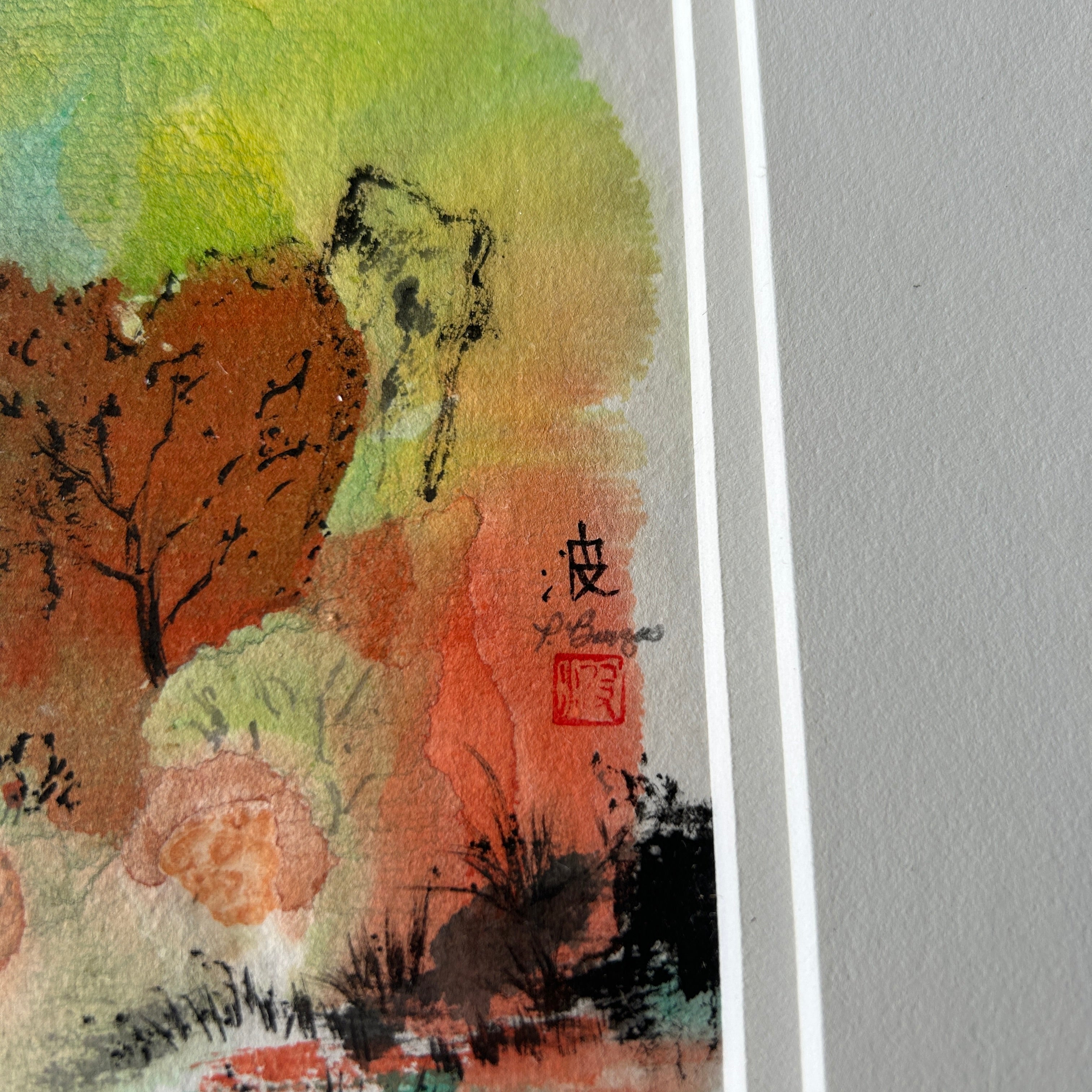 Signed Original Sumi "China's Li River" by Patricia Bruzas 14" L x 12" H