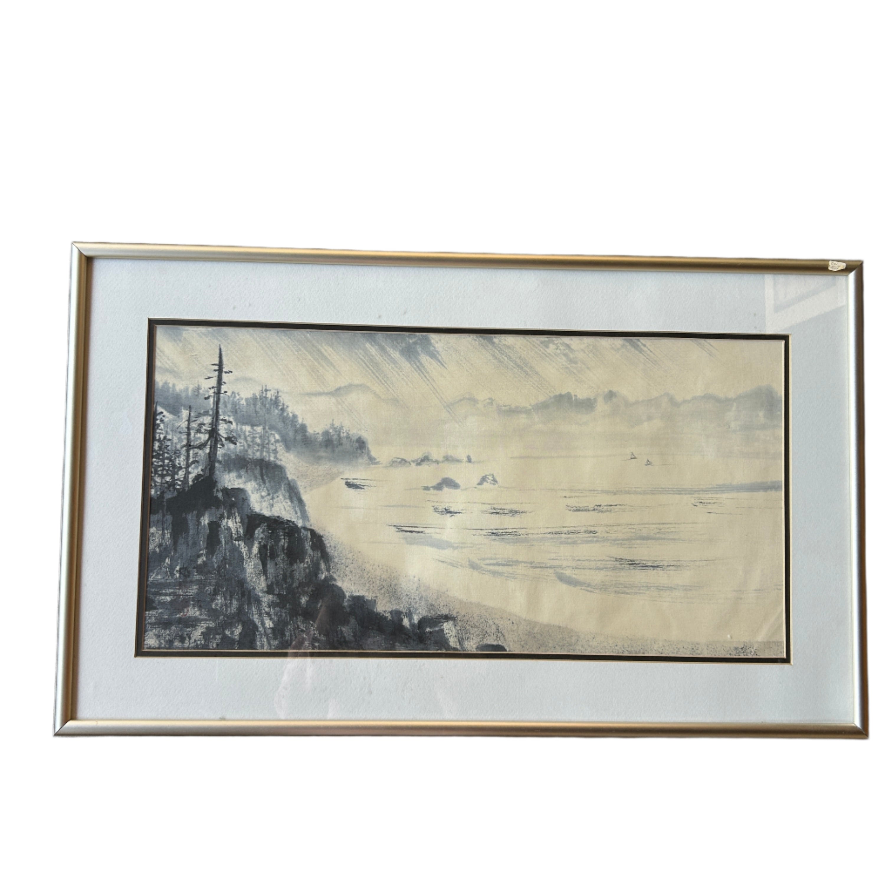 Coastal Sumi of the Sea in Warm Beige Tones - This coastal sumi ink painting captures the serene beauty of the sea in muted beige tones. Its peaceful composition evokes a sense of calm and relaxation.