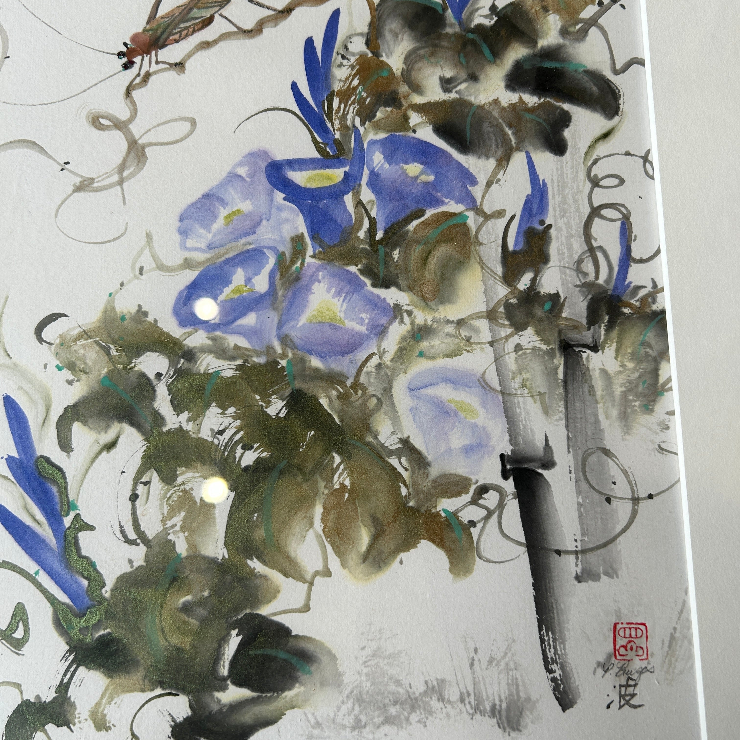 Signed Original Sumi "Grasshopper" by Patricia Bruzas 16" L x 21" H