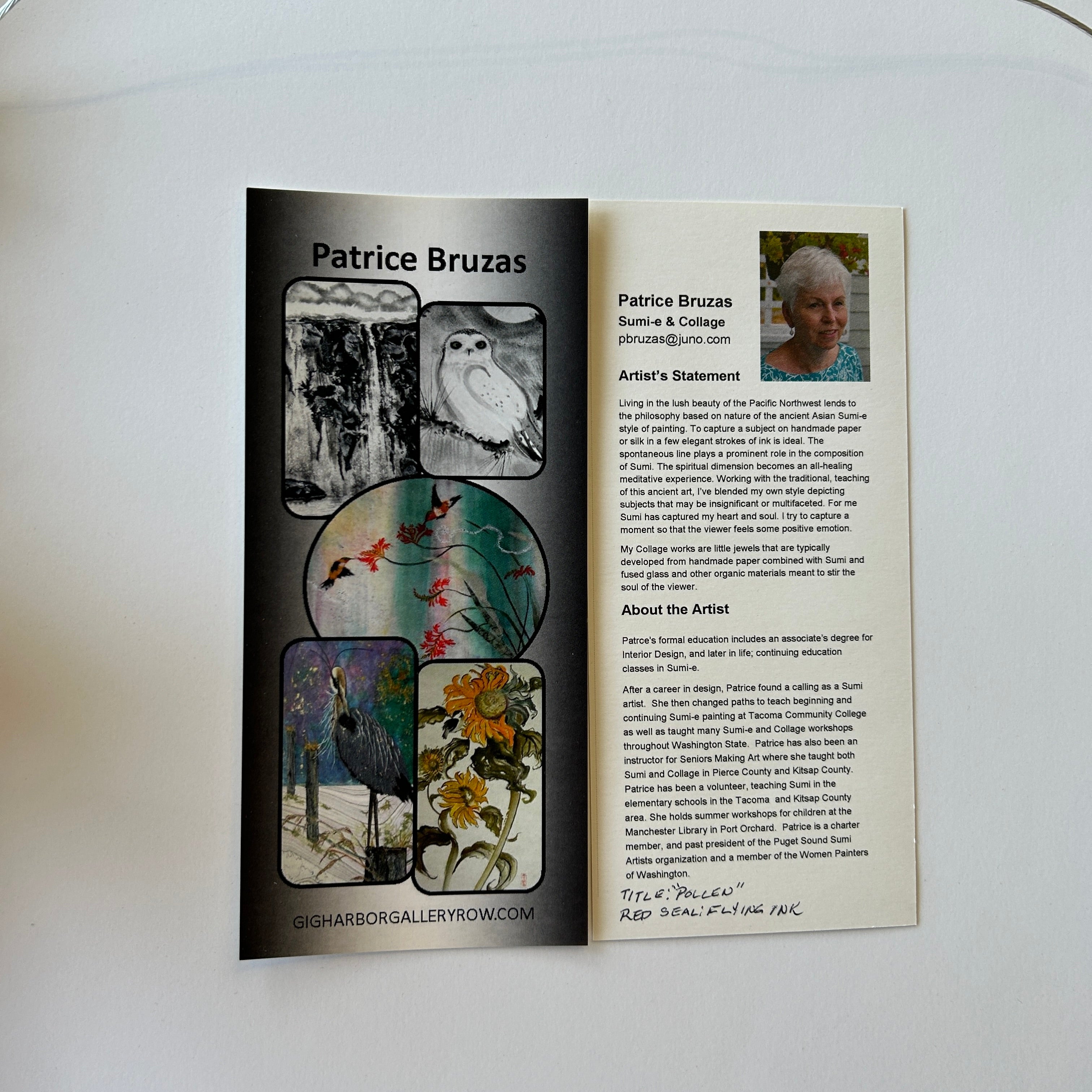 After a career in design, Patrice found a calling as a Sumi artist. She then changed paths to teach beginning and continuing Sumi-e painting at Tacoma Community College as well as taught many Sumi-e and Collage workshops throughout Washington State. Patrice has also been an instructor for Seniors Making