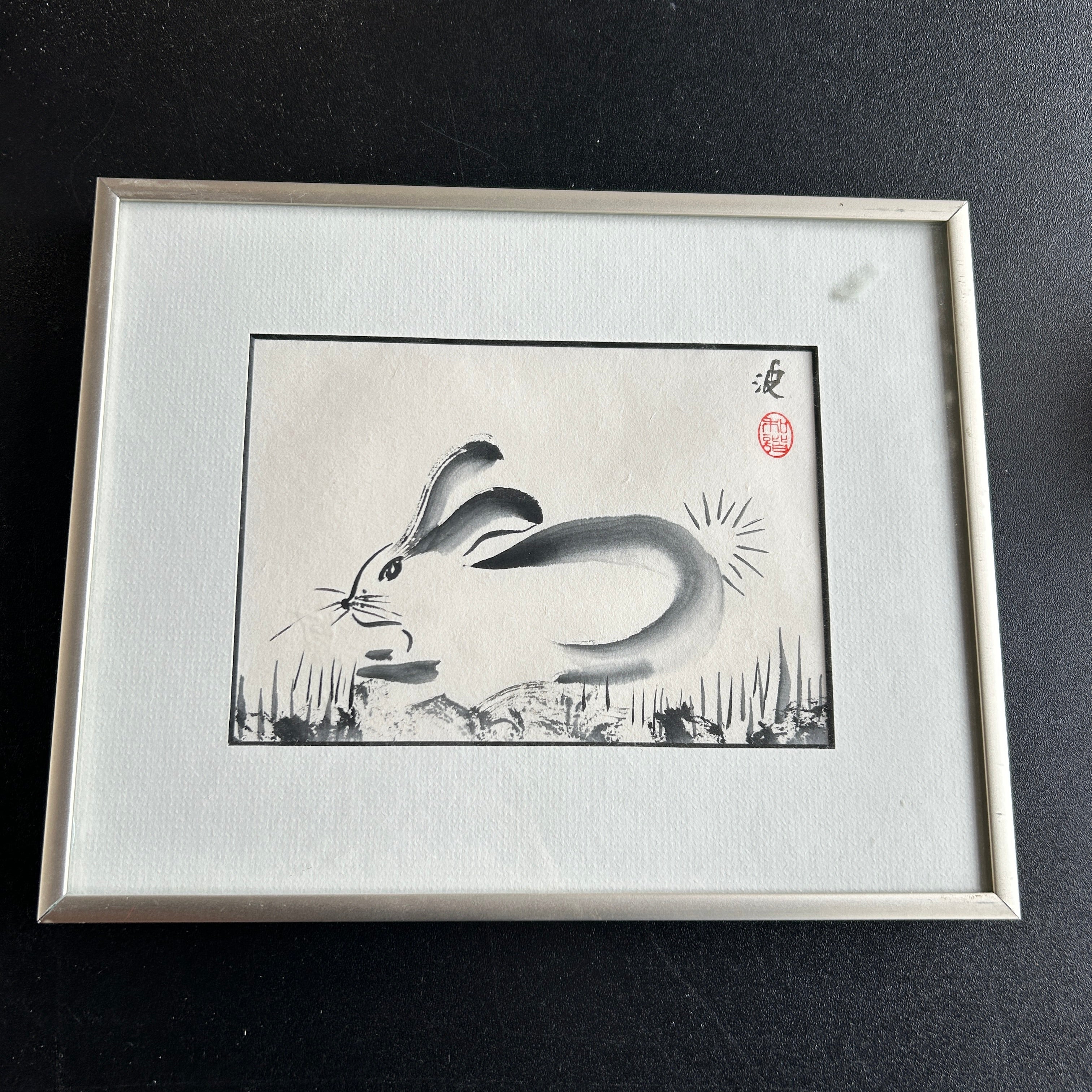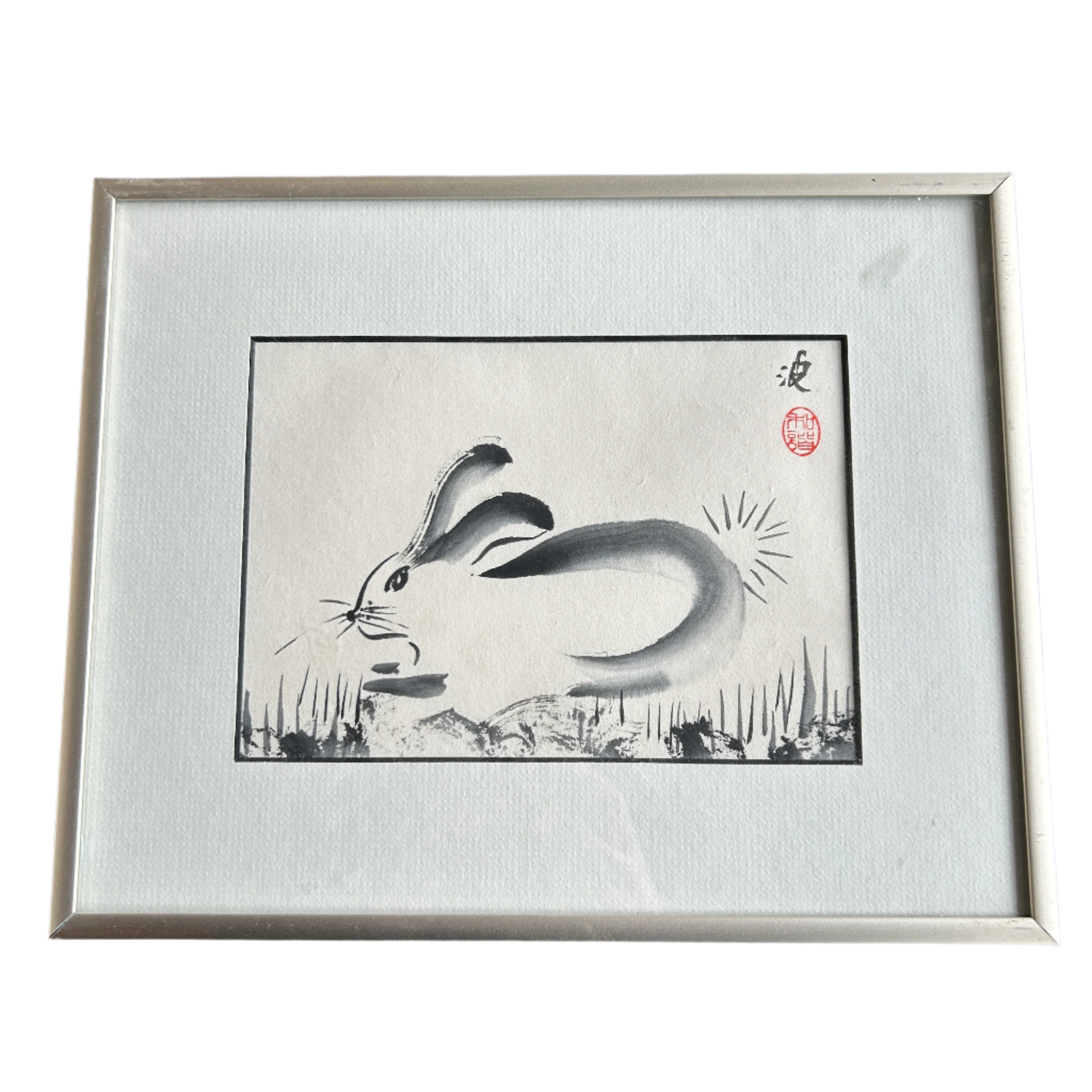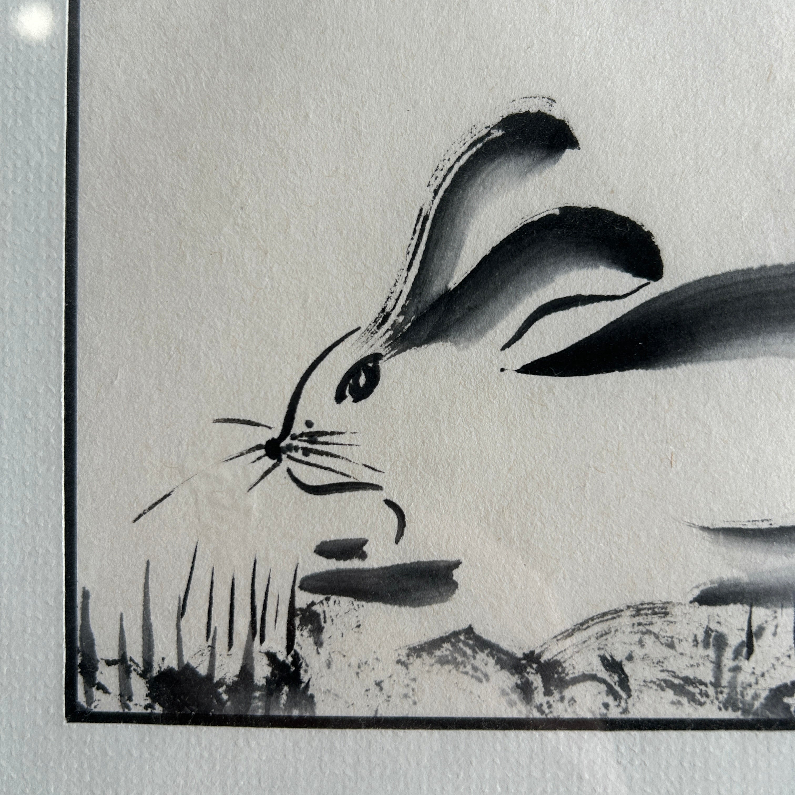 Signed Original Sumi "Rabbit" by Patricia Bruzas 10" L x 8" H