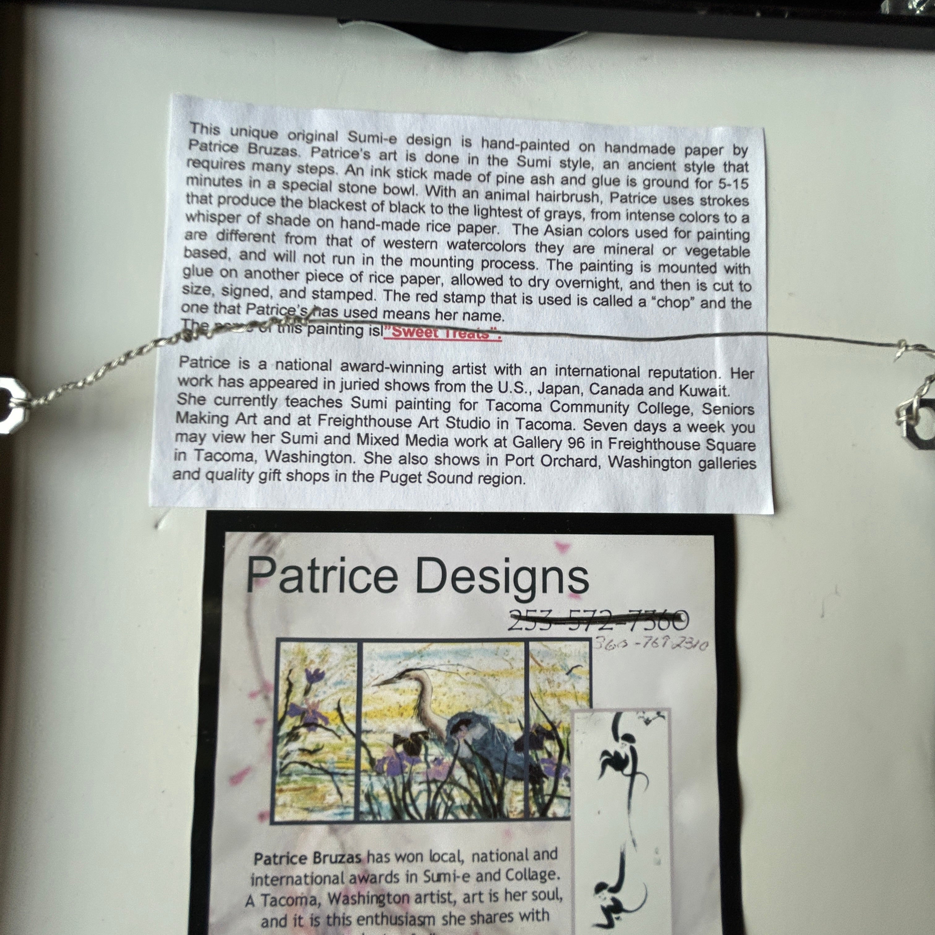Signed Original Sumi "Sweet Treat" by Patricia Bruzas 11 " L x 14" H