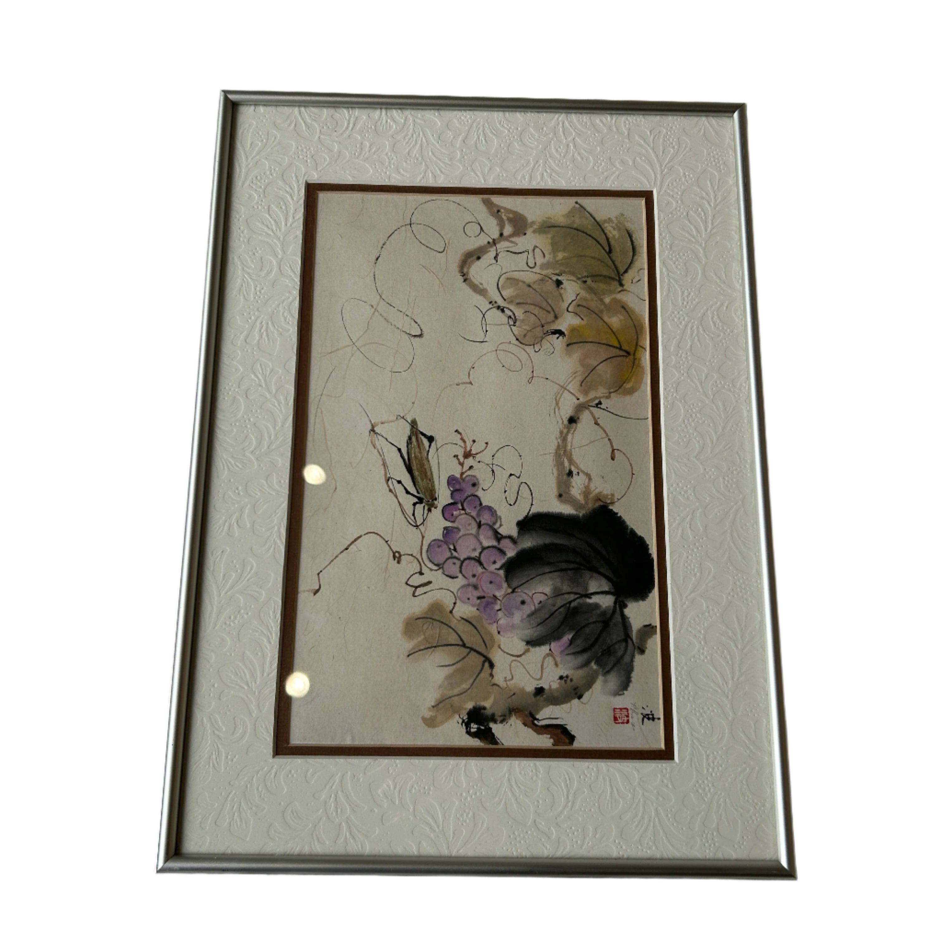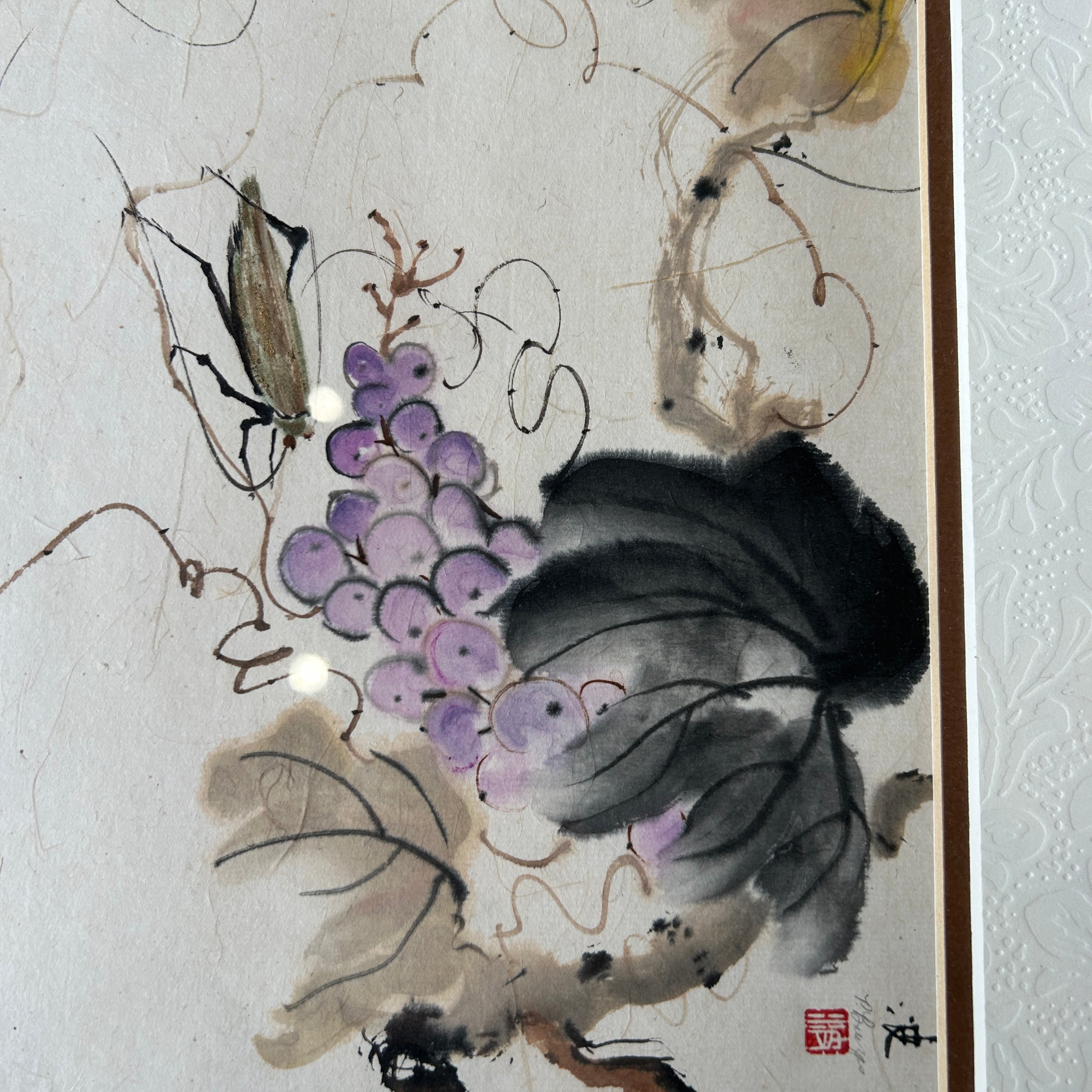 Signed Original Sumi "Through the Grapevine" by Patricia Bruzas 13" L x 18" H