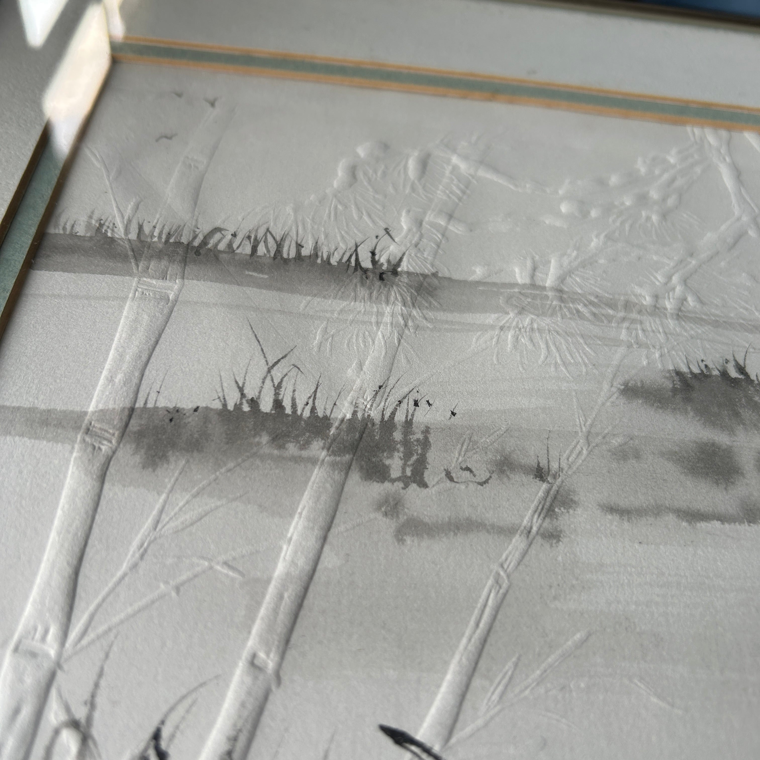 Signed Original Sumi "Zen Birds" by Patricia Bruzas 11 " L x 19" H