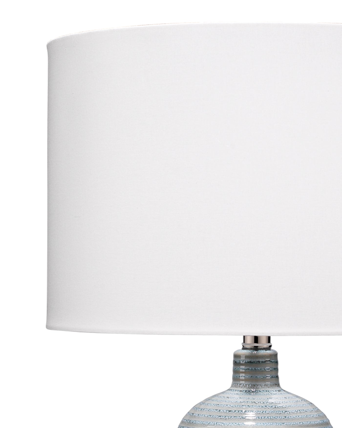 Like a breath of fresh air, the Declan lamp is the ideal addition to your at-home oasis. With an artfully ridged ceramic base in a soft blue reactive glaze, a white cotton drum shade, and a gleaming silver finial and neck, its easy lines showcase the quality of its fine craftmanship.