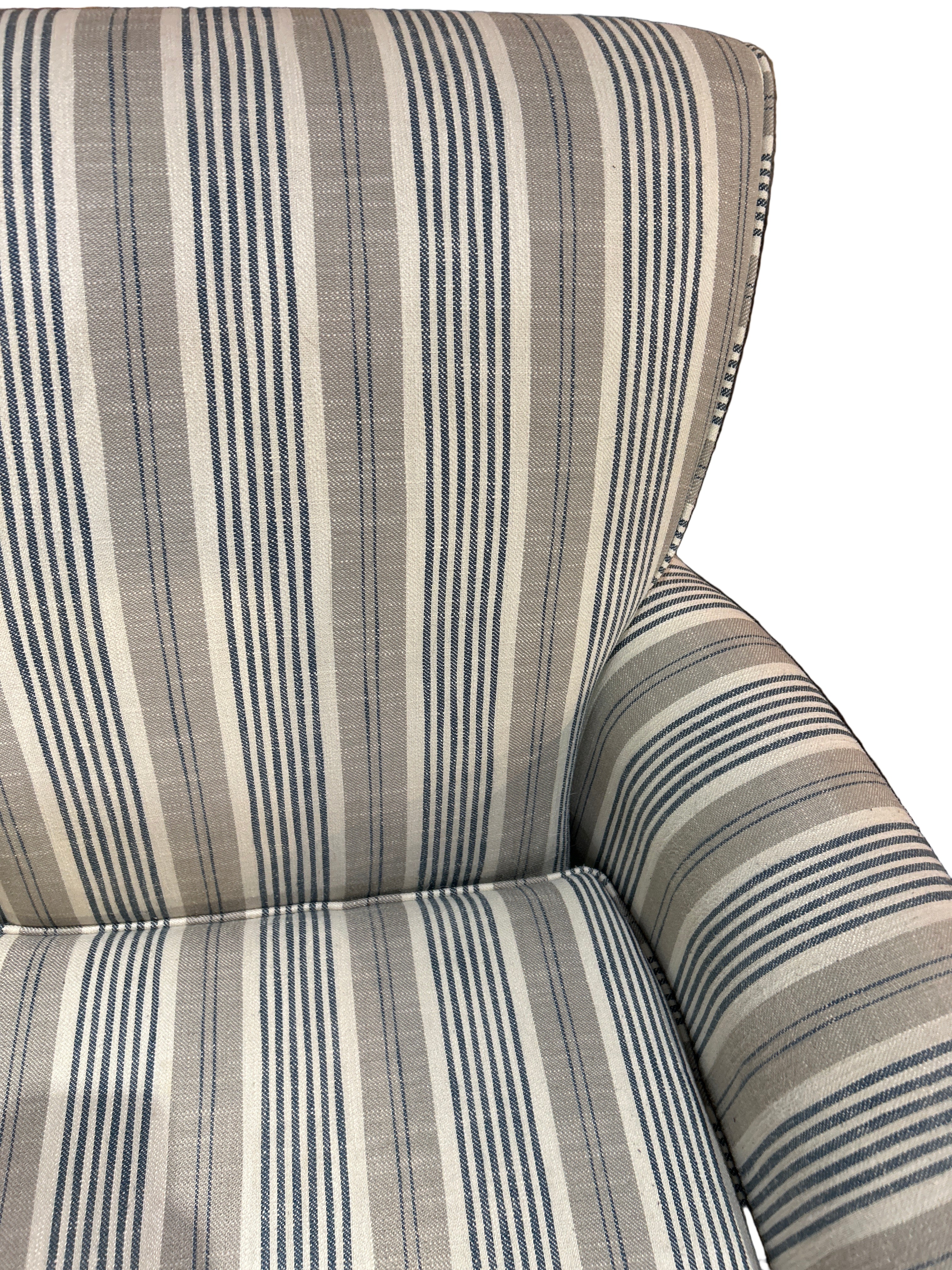 Durobilt Blue and Beige Striped Upholstered Armchair 34” L x 36” W x 36“ H