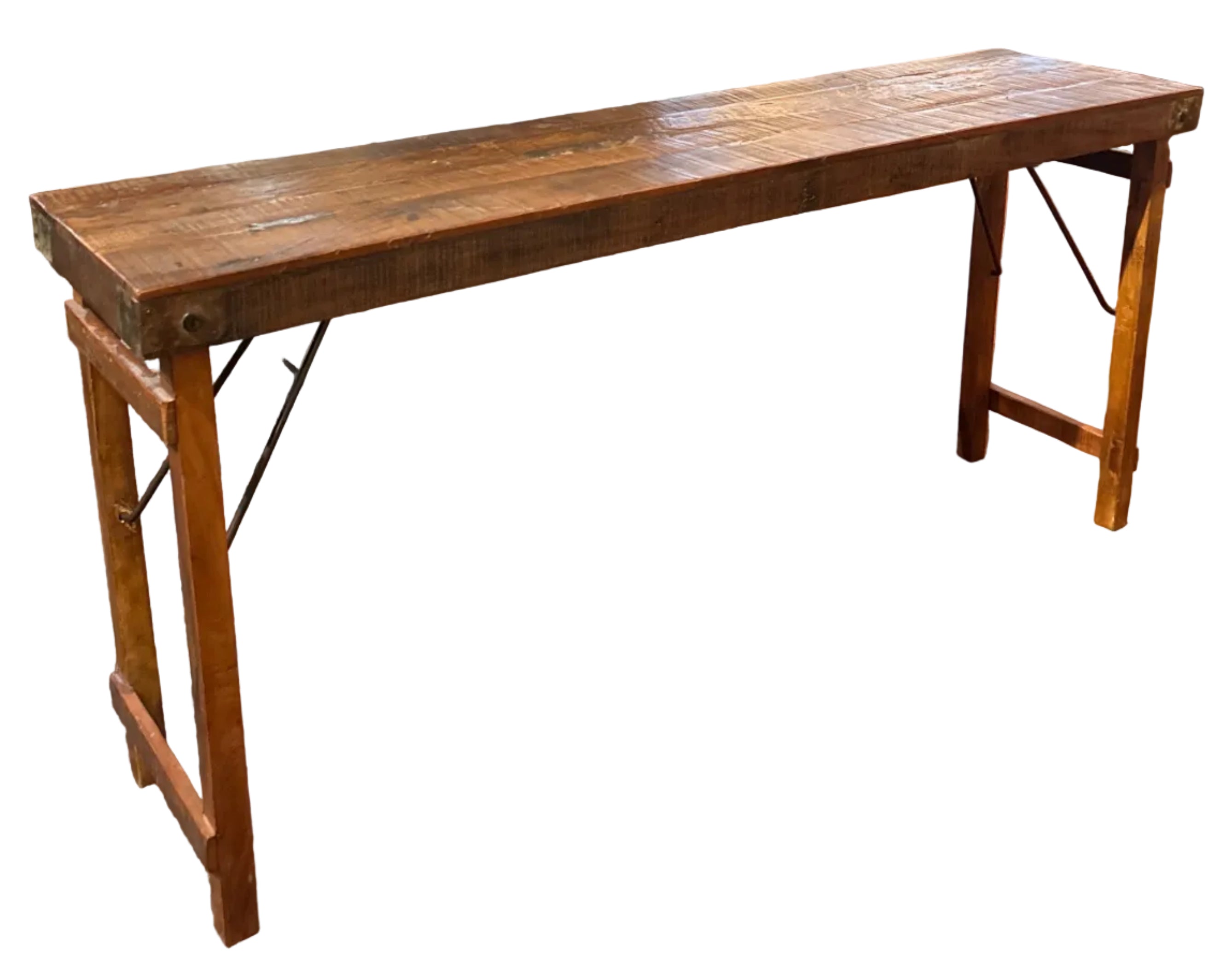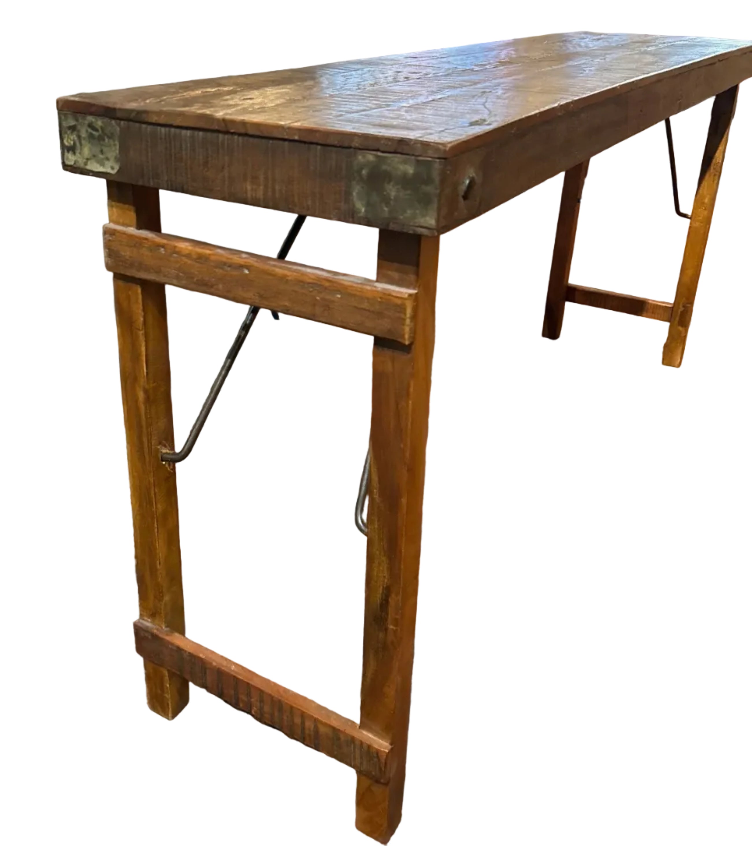 Vintage condition FOLDABLE Wedding table for quick storage : antique design with brass hardware, made of durable teak, and originating from India. Gorgeous, timeless, and perfect for a industrial, vintage, or traditional home. Sleek and classic!