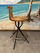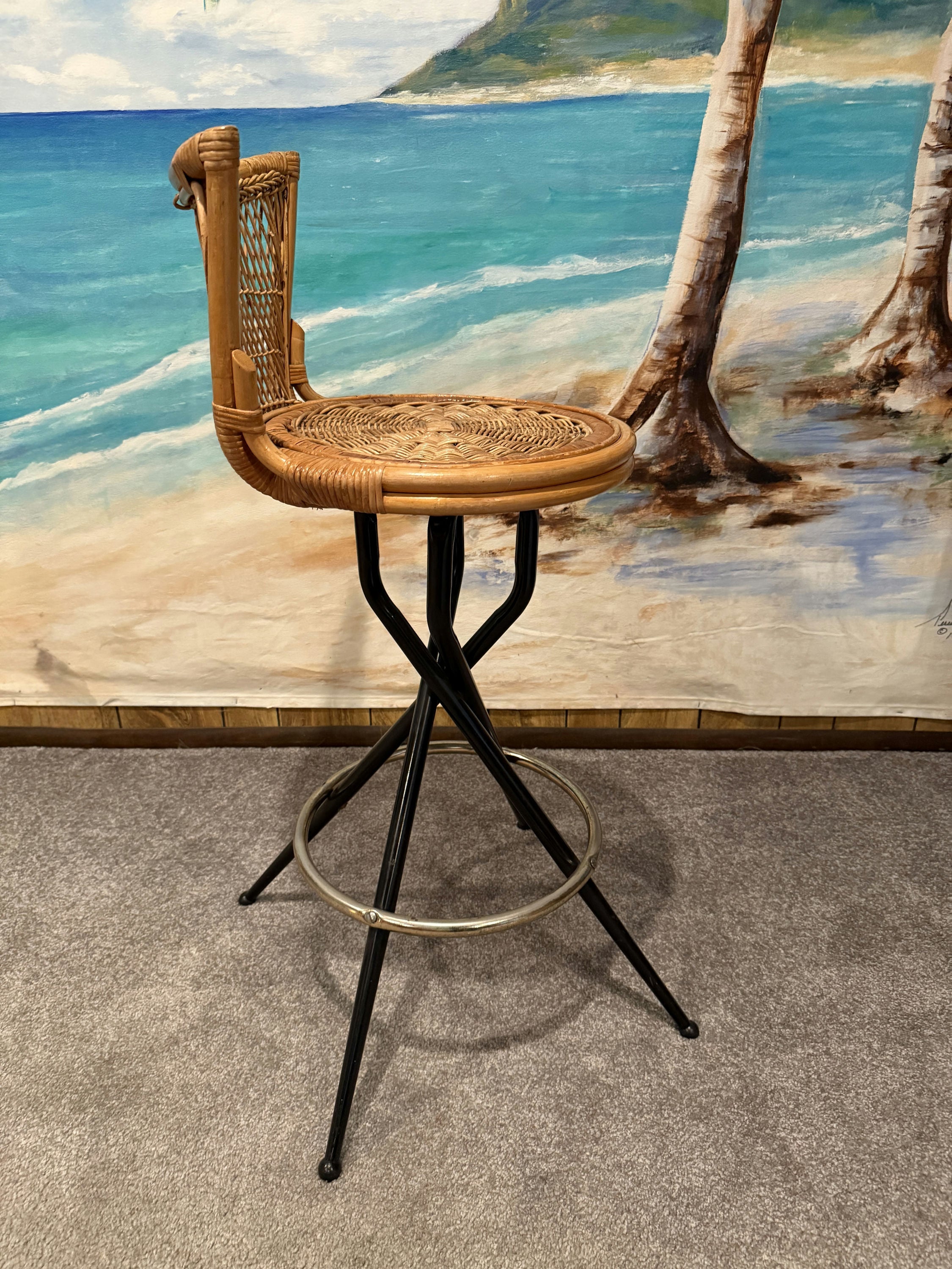 Vintage MCM Rattan Swivel Bar Stool 16"W x 29-38"H