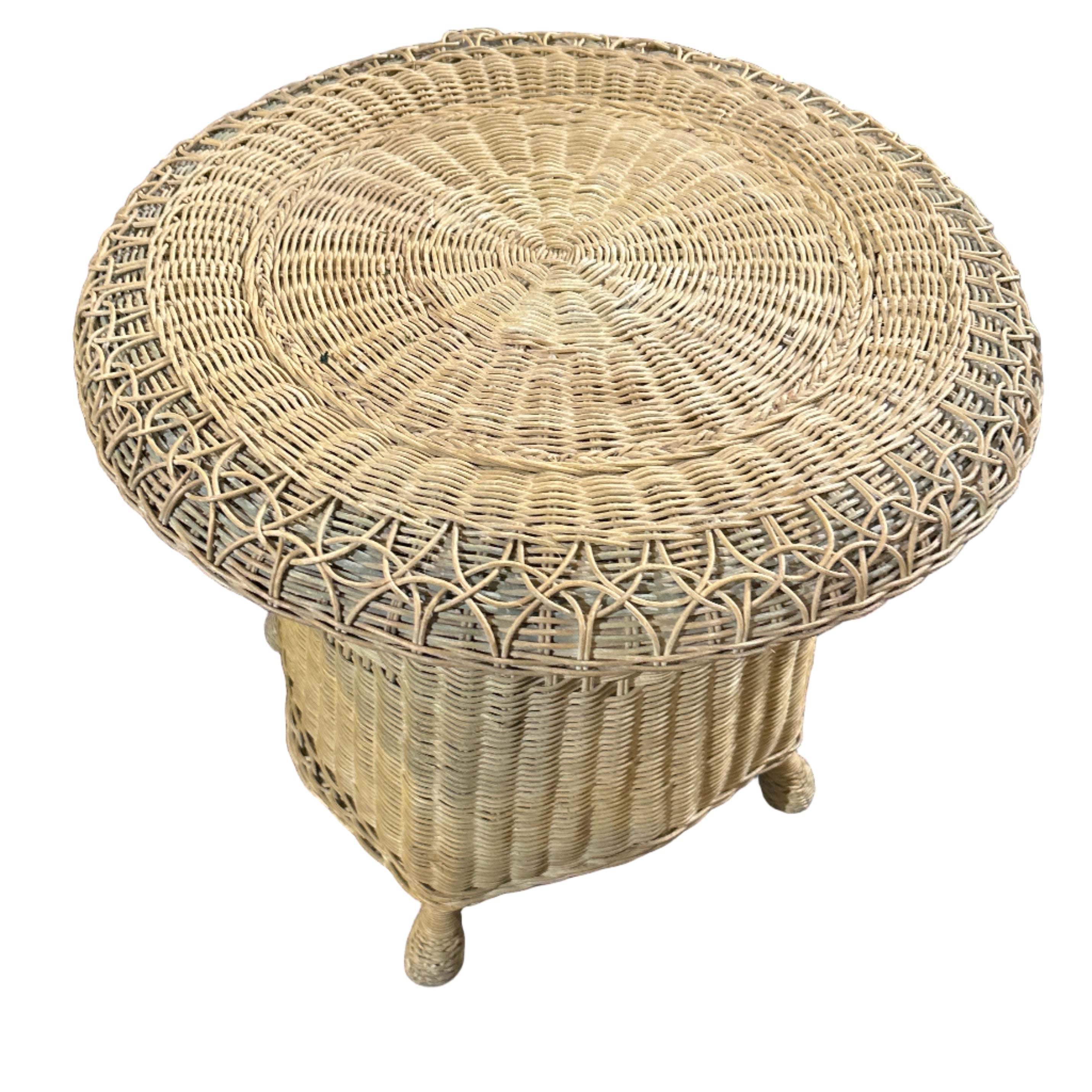 Absolutely beautiful vintage wicker mushroom table with natural finish, unpainted, untouched. Hard to find these in a natural finish, without paint!
