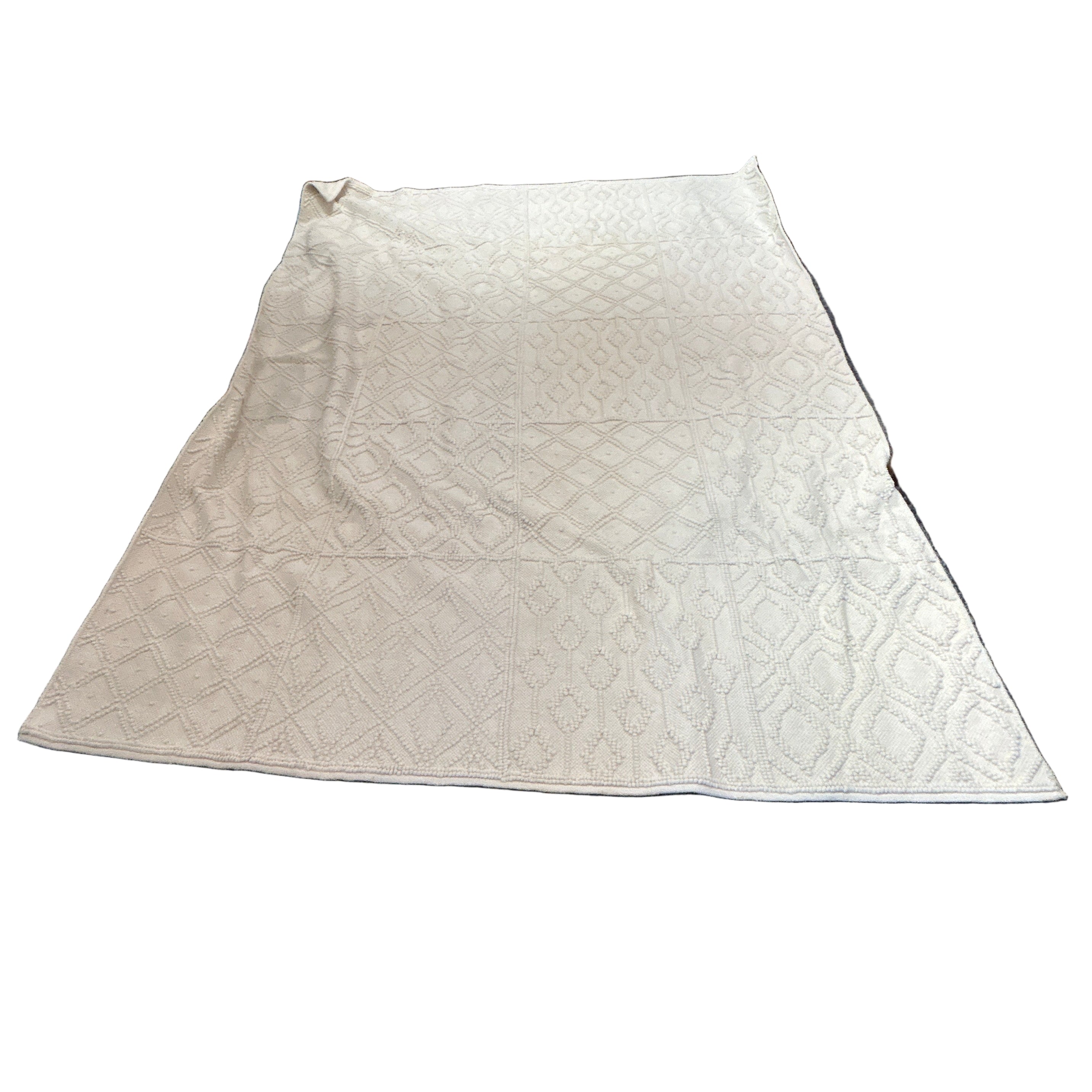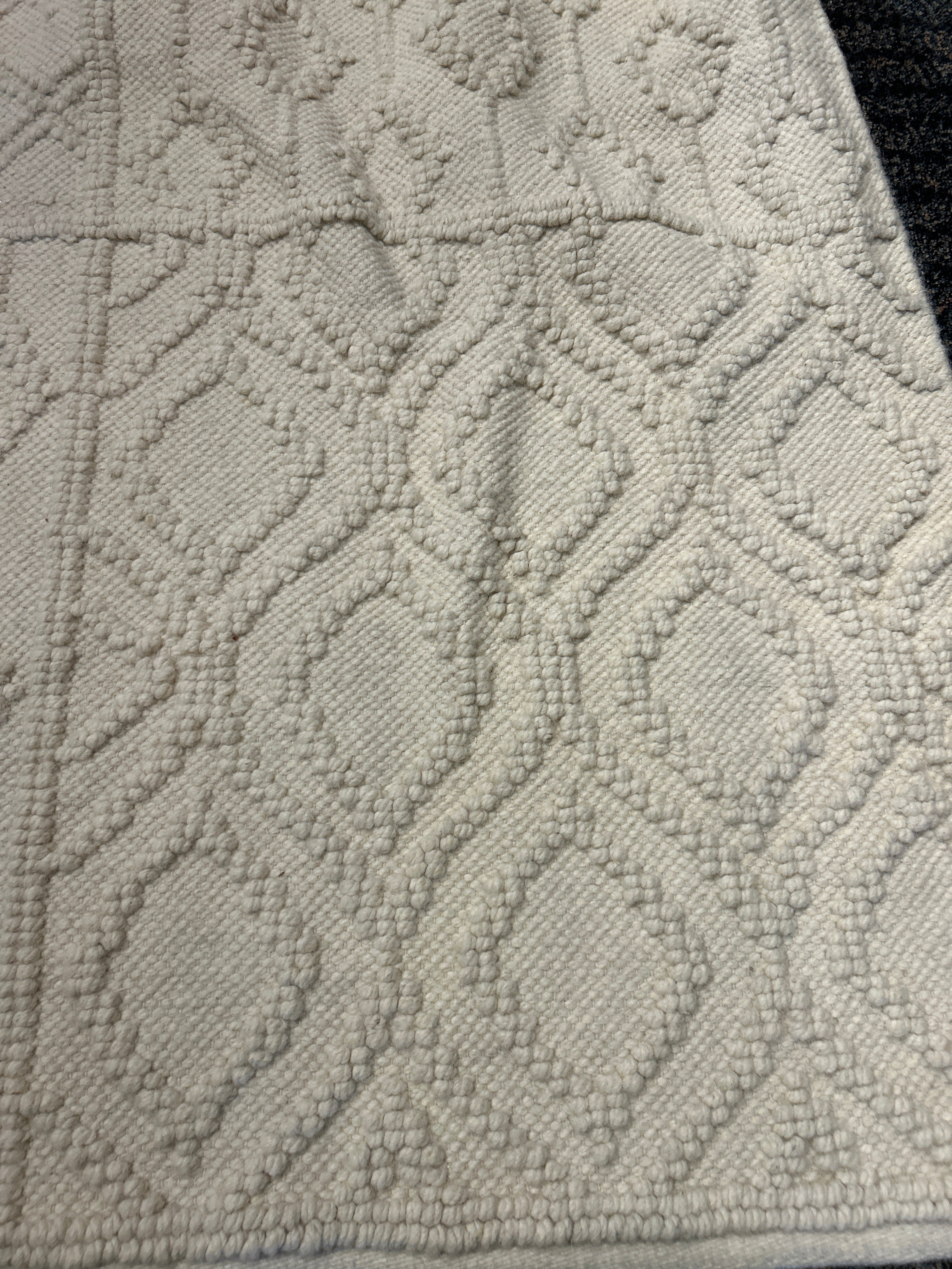 Experience a touch of elegance with our West Elm hand-tufted wool rug. Crafted with care, this piece showcases a natural ivory hue made from undyed wool, adding a warm and inviting atmosphere to any space. The decorative tufted markings feature larger diamond shapes, enhancing the rug's visual appeal.