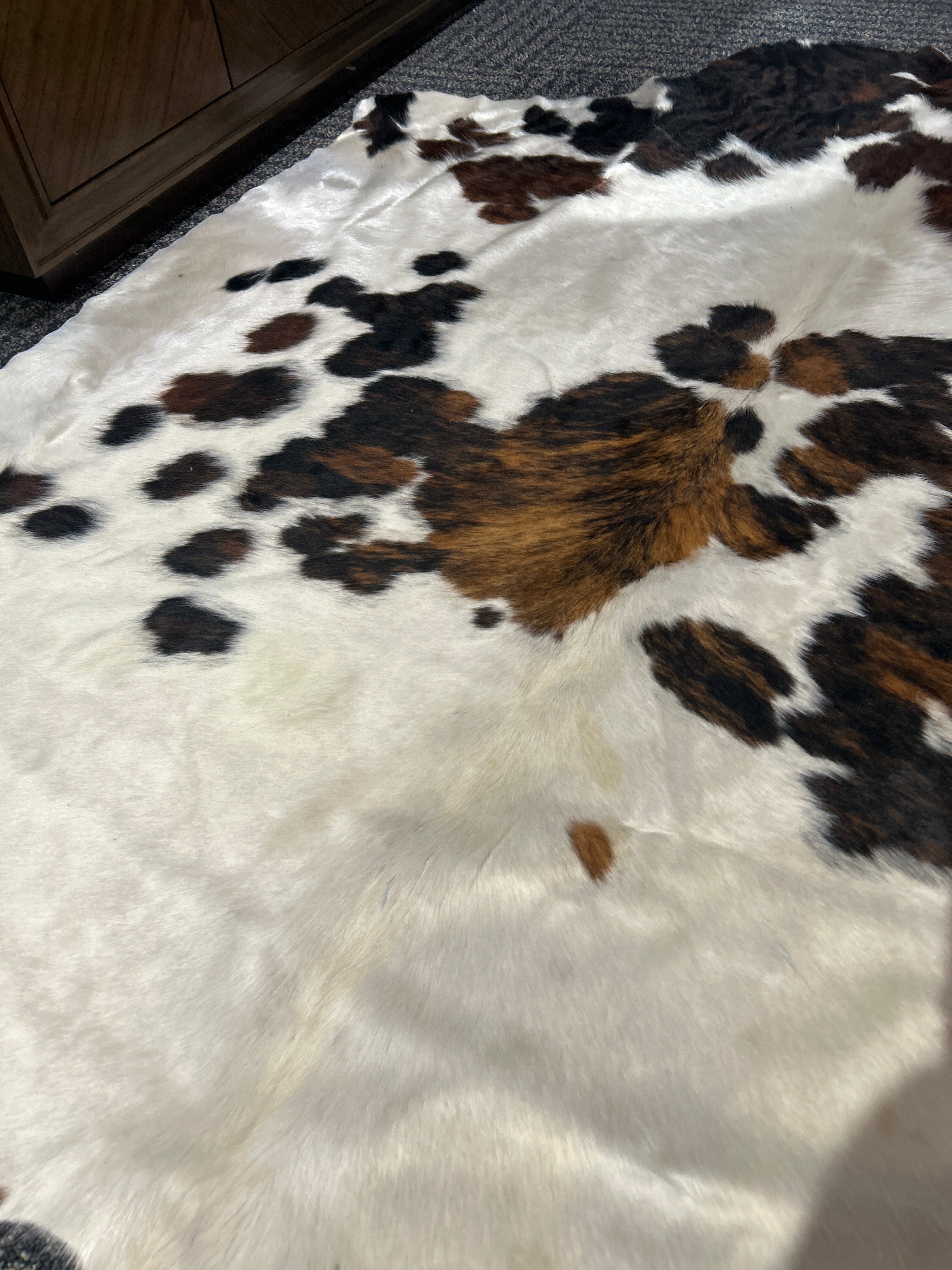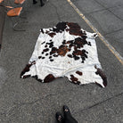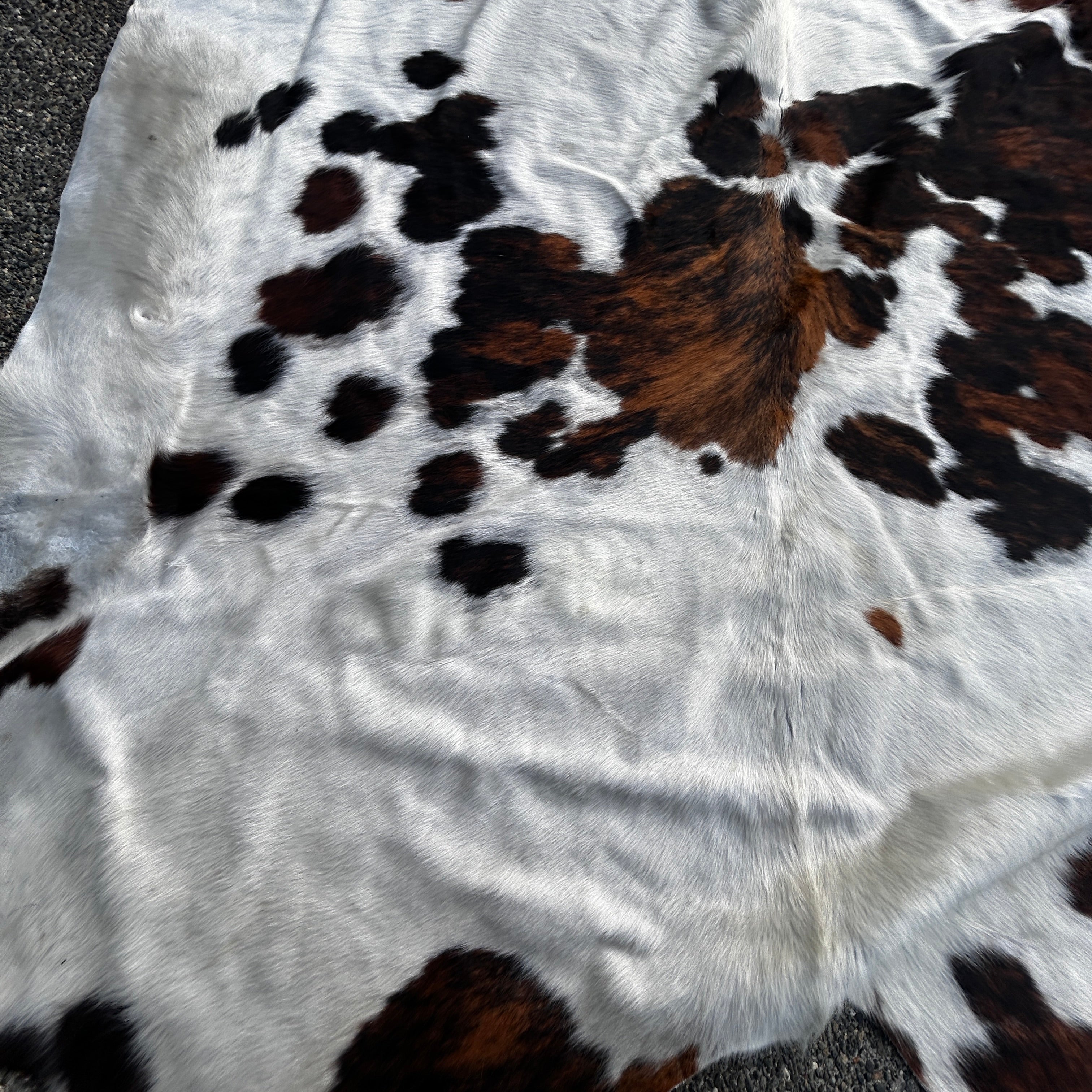 White and Brown Stunning Lg. Cowhide Rug 6' 6"L x 6' 2" W
